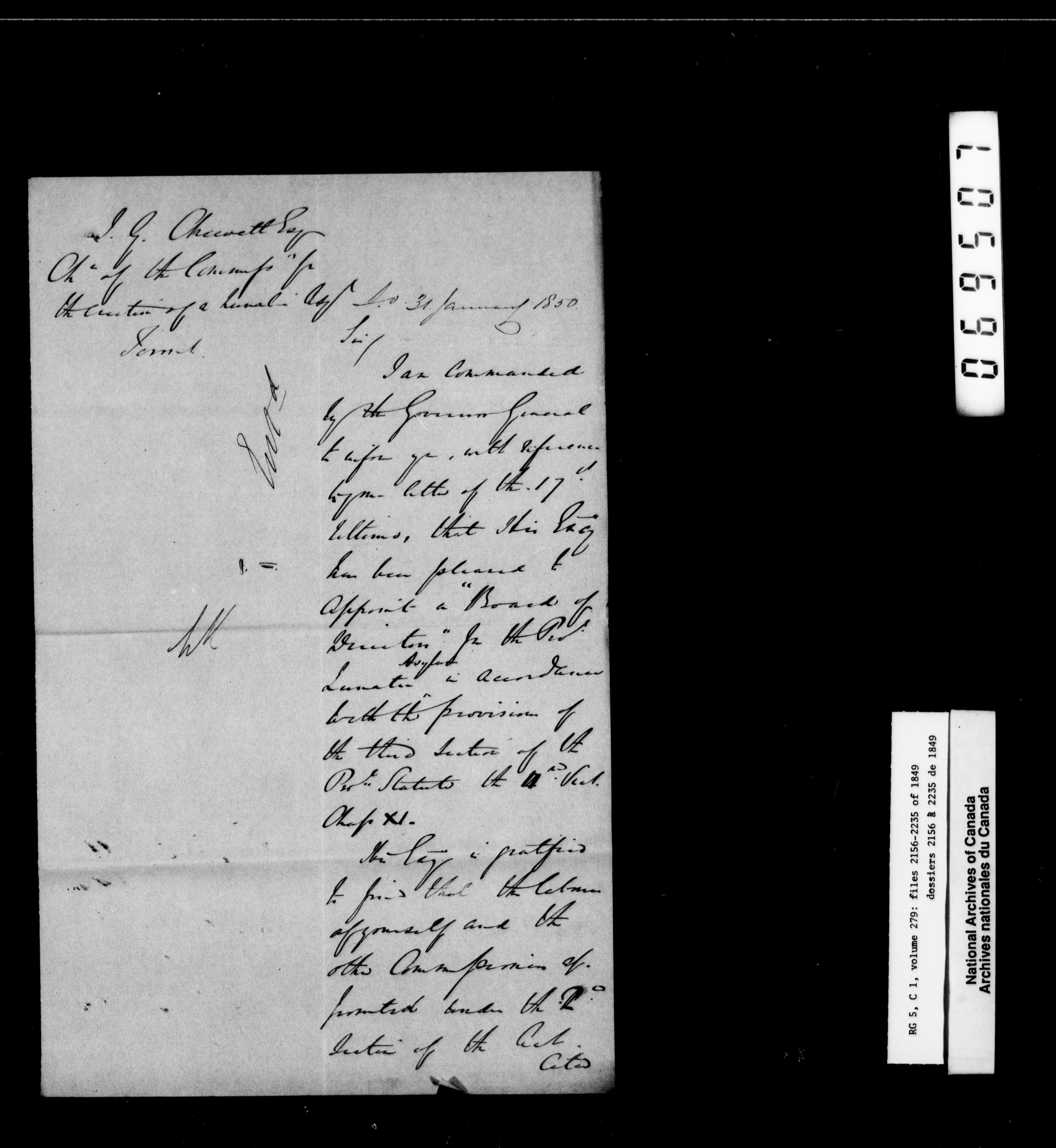 Canada West : Provincial Secretary, numbered correspondence files, 1844 to 1867 - 2398