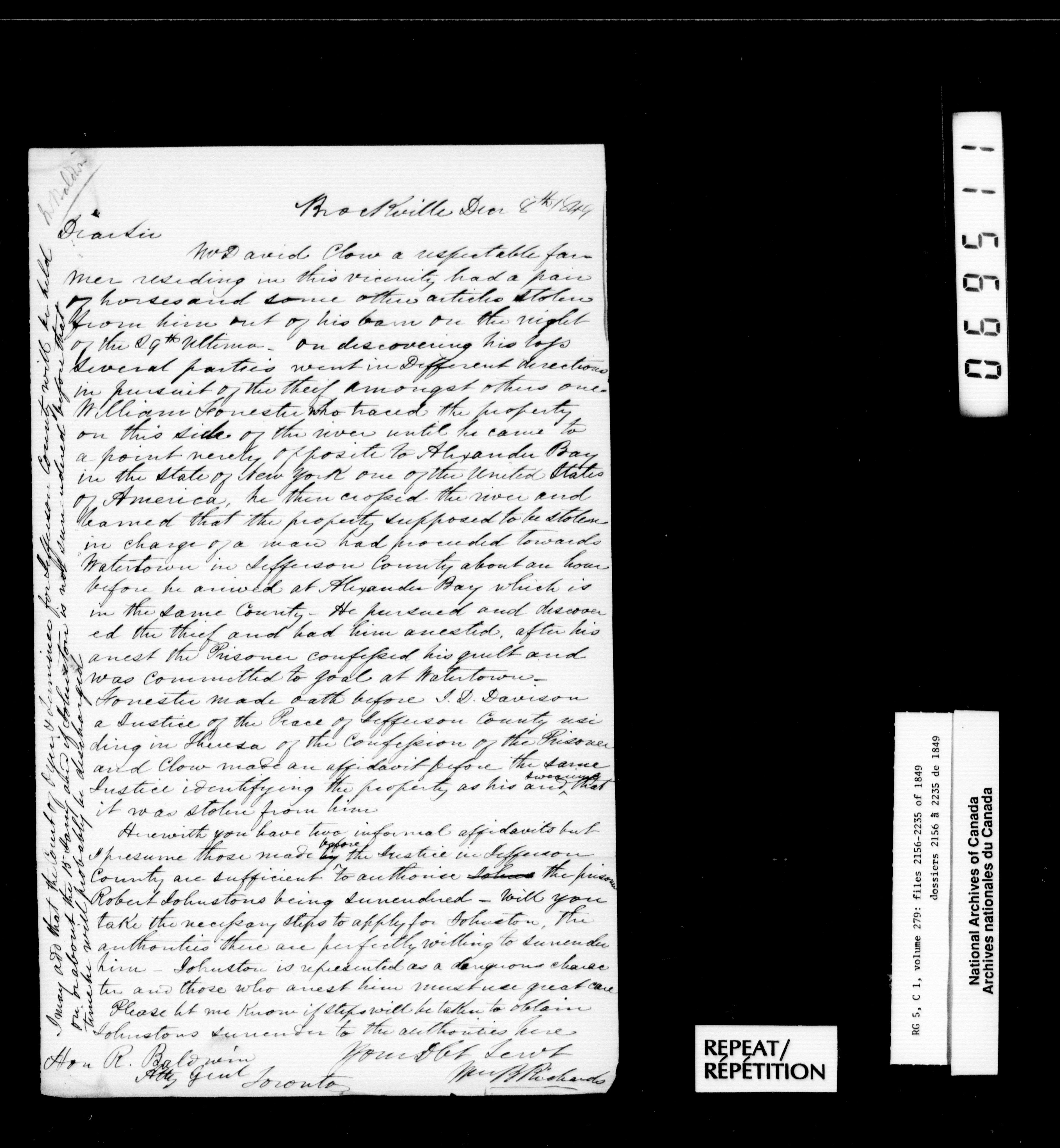 Canada West : Provincial Secretary, numbered correspondence files, 1844 to 1867 - 2398