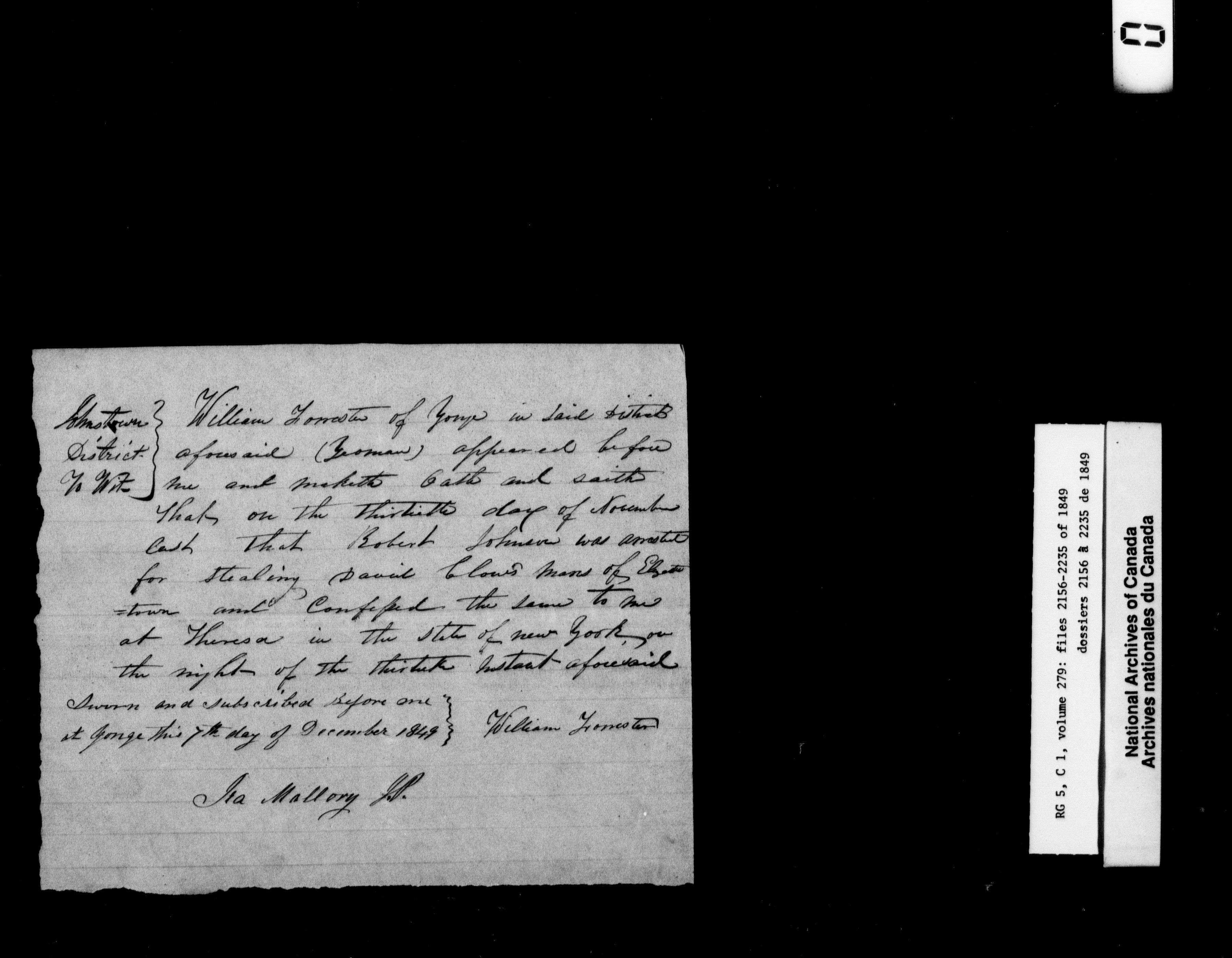 Canada West : Provincial Secretary, numbered correspondence files, 1844 to 1867 - 2398