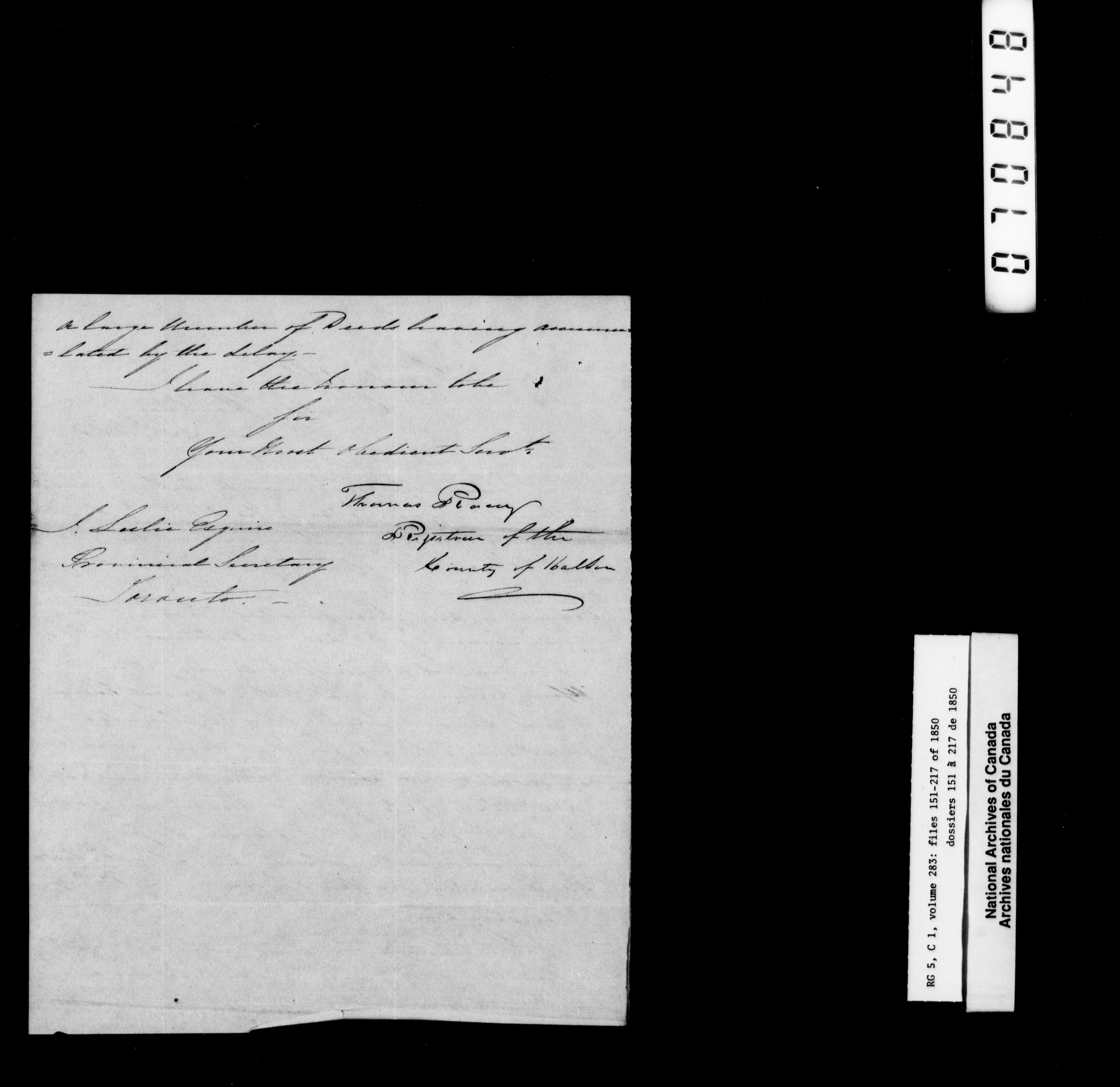 Canada West : Provincial Secretary, numbered correspondence files, 1844 to 1867 : H-2399