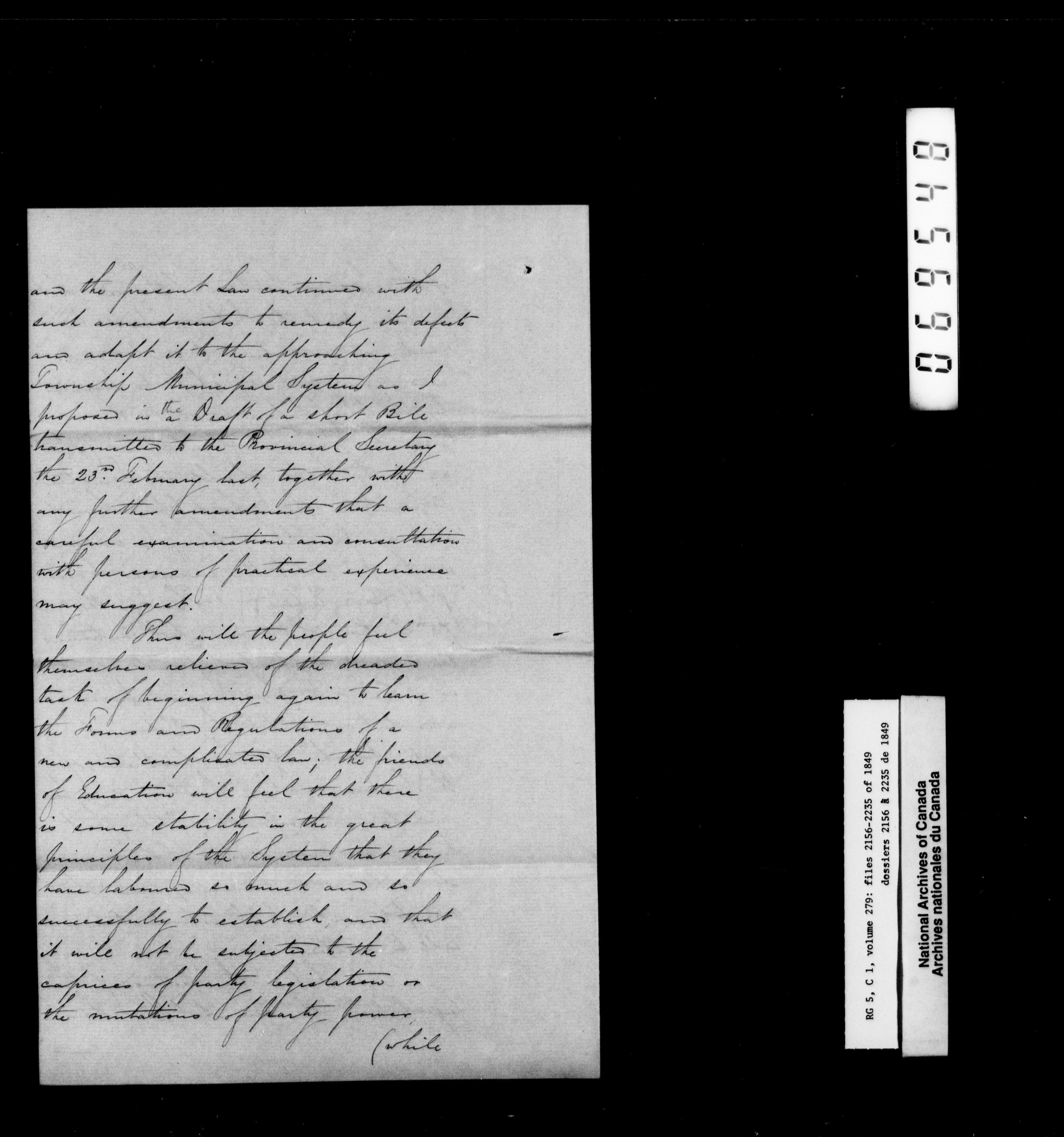 Canada West : Provincial Secretary, numbered correspondence files, 1844 to 1867 - 2399