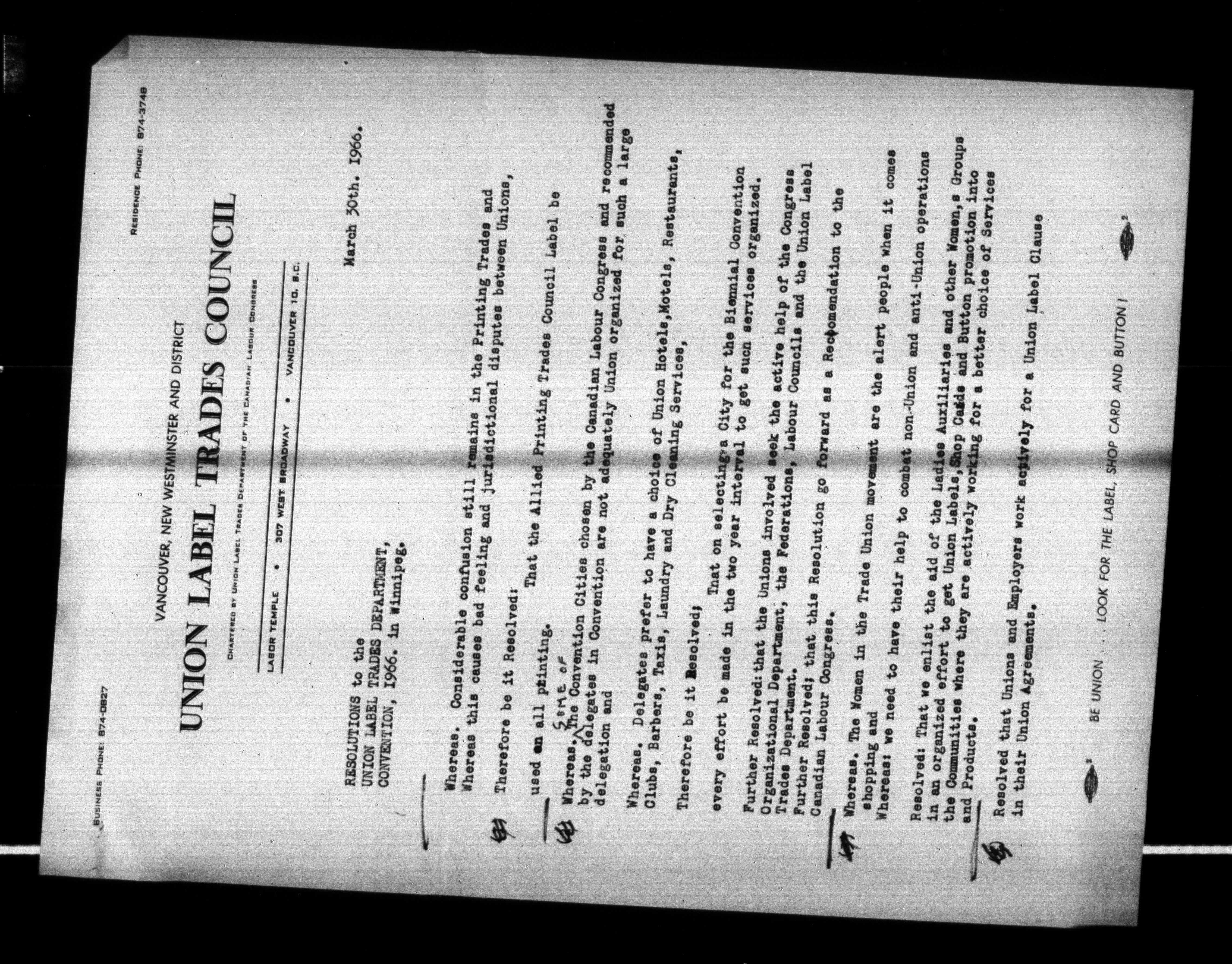 Canadian Labour Congress : Union Label Trades Department - 240