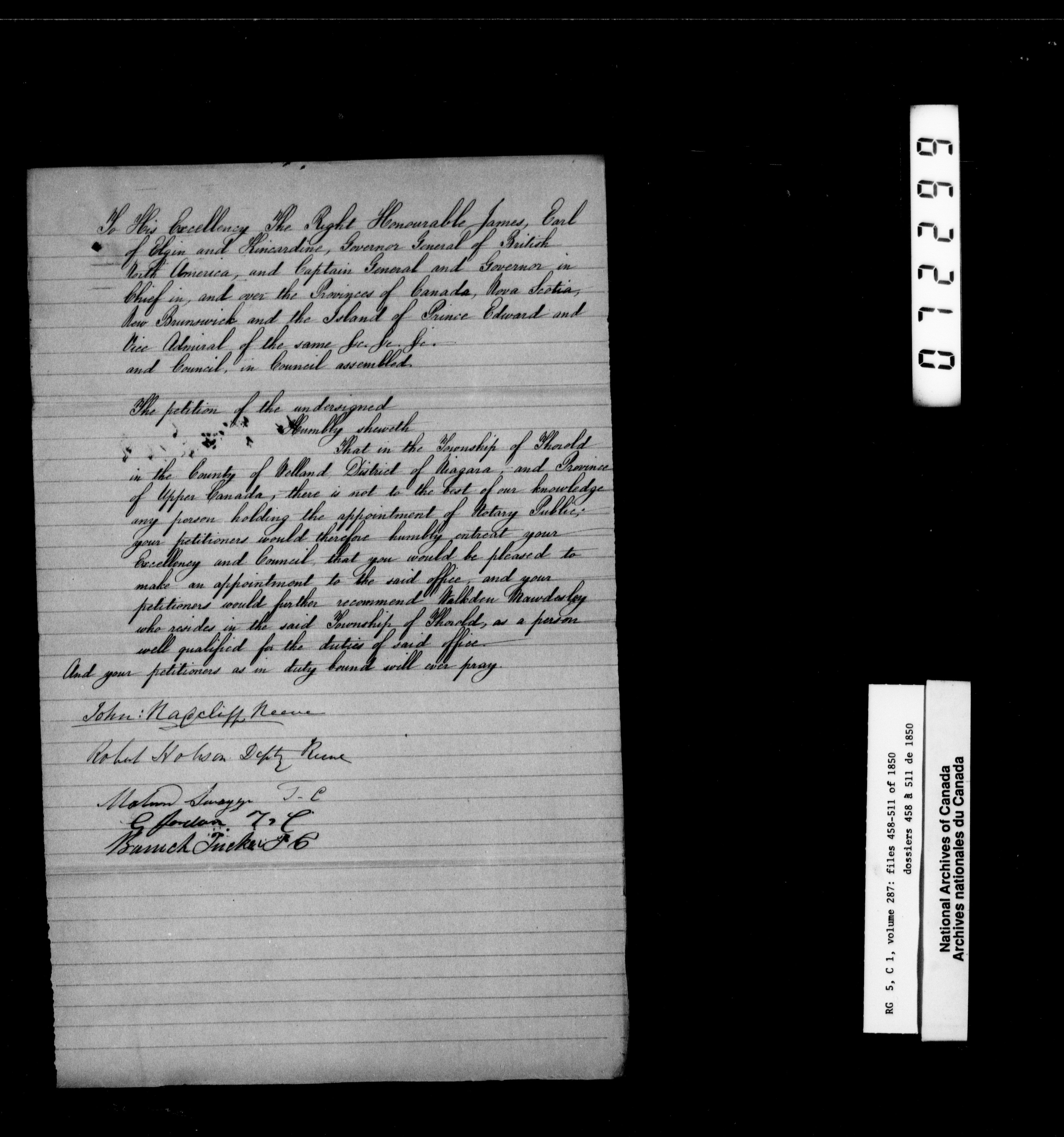 Canada West : Provincial Secretary, numbered correspondence files, 1844 to 1867 - 2400