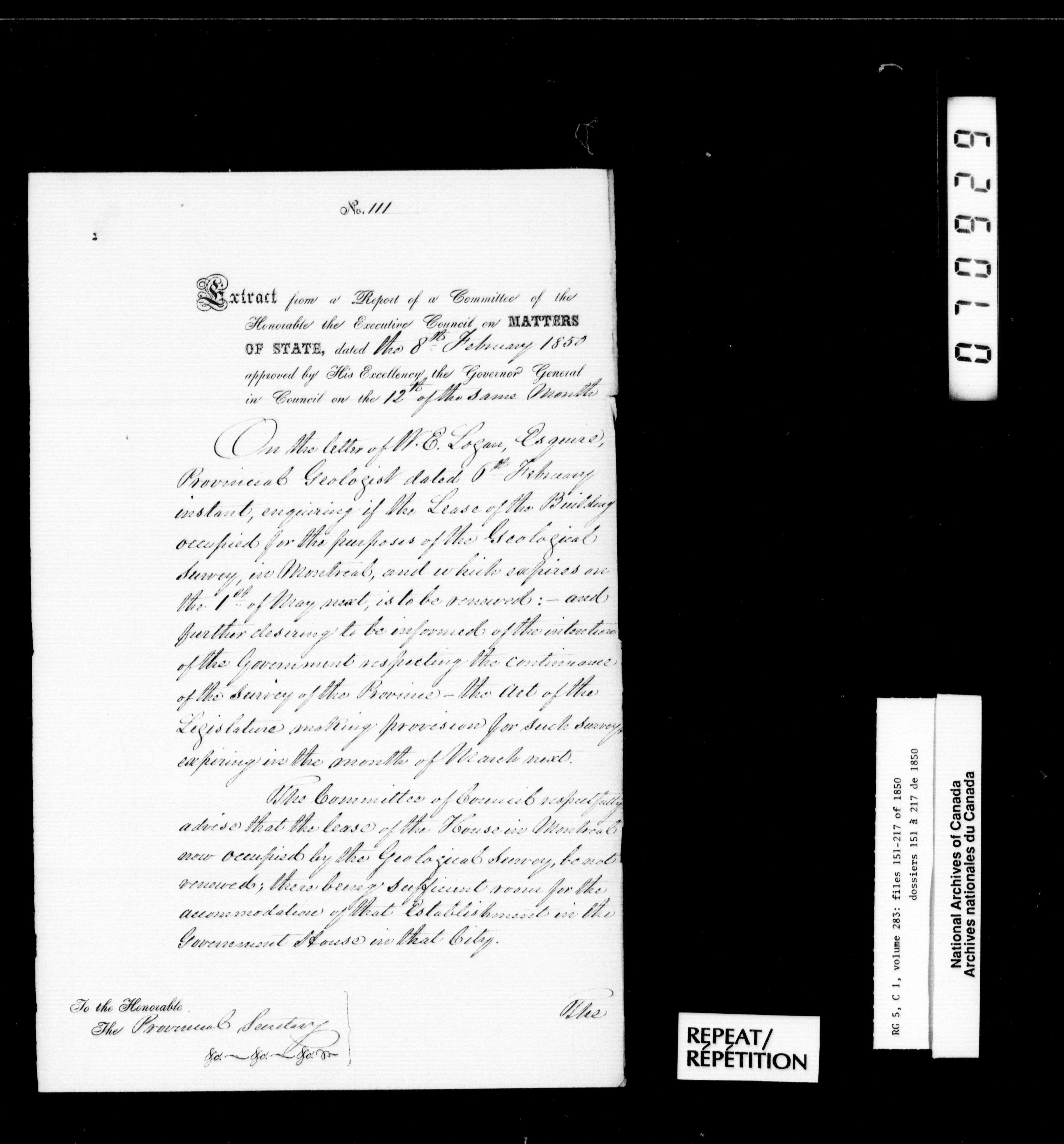 Canada West : Provincial Secretary, numbered correspondence files, 1844 to 1867 : H-2400
