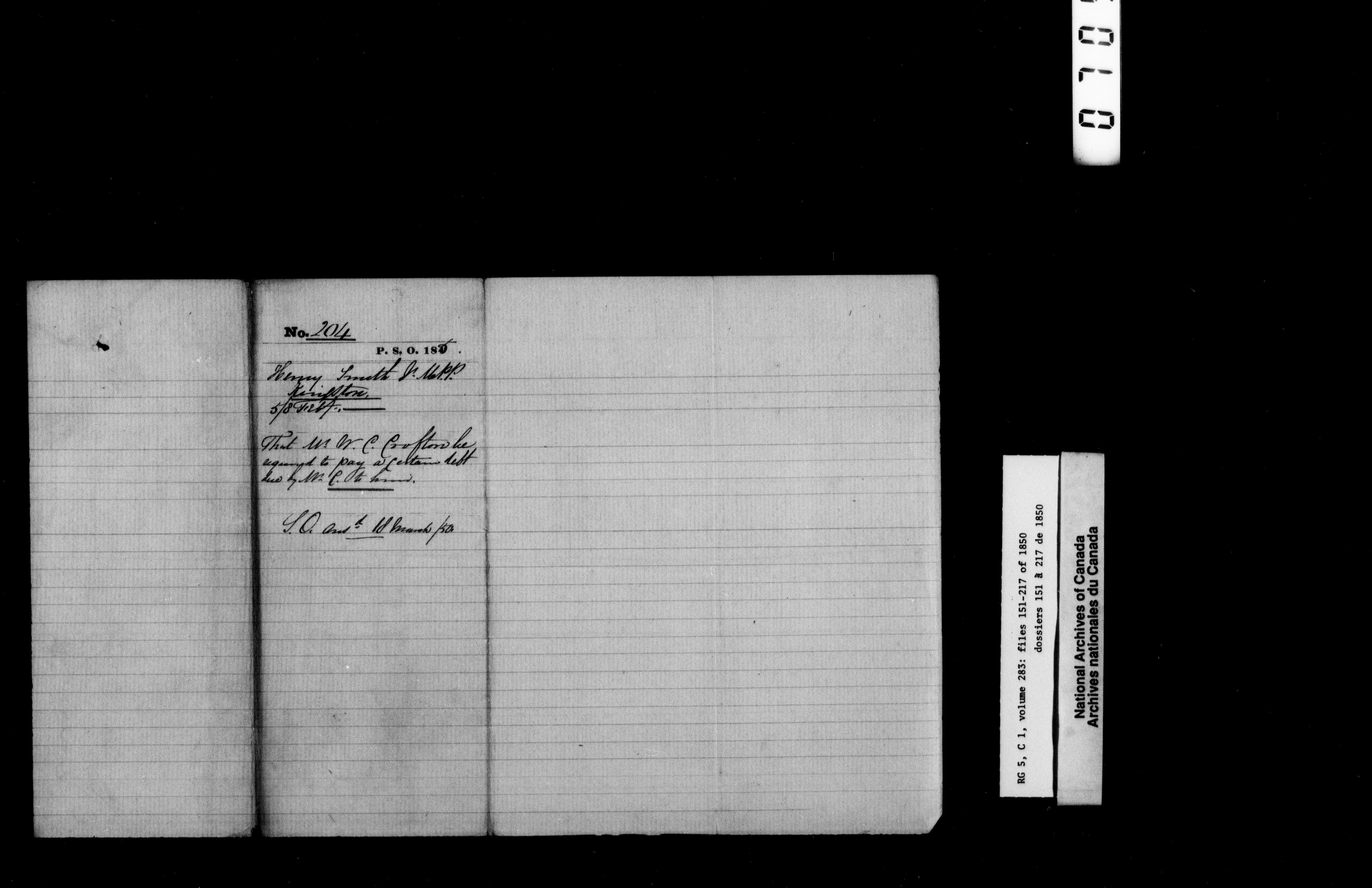Canada West : Provincial Secretary, numbered correspondence files, 1844 to 1867 : H-2400