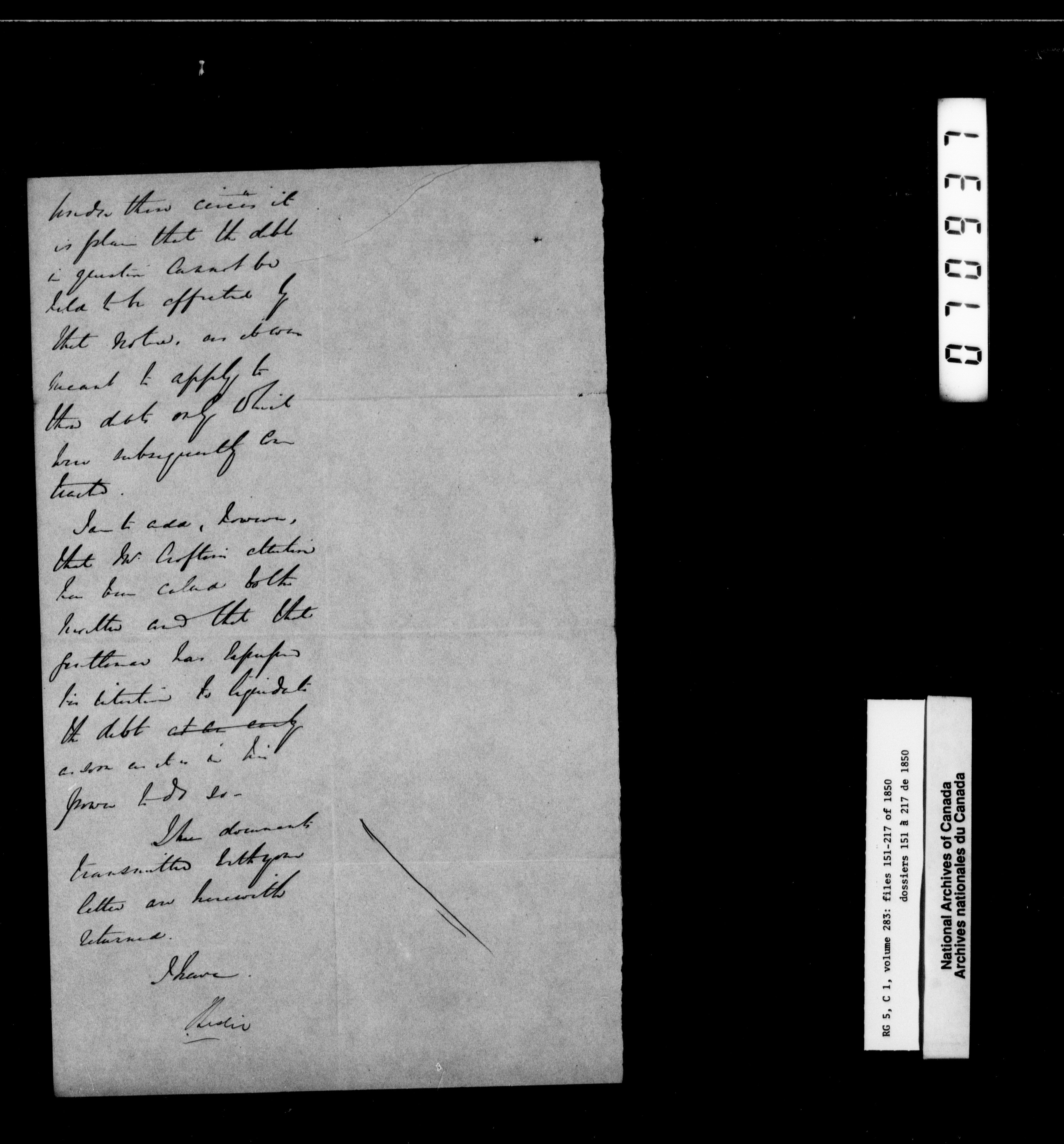 Canada West : Provincial Secretary, numbered correspondence files, 1844 to 1867 - 2400