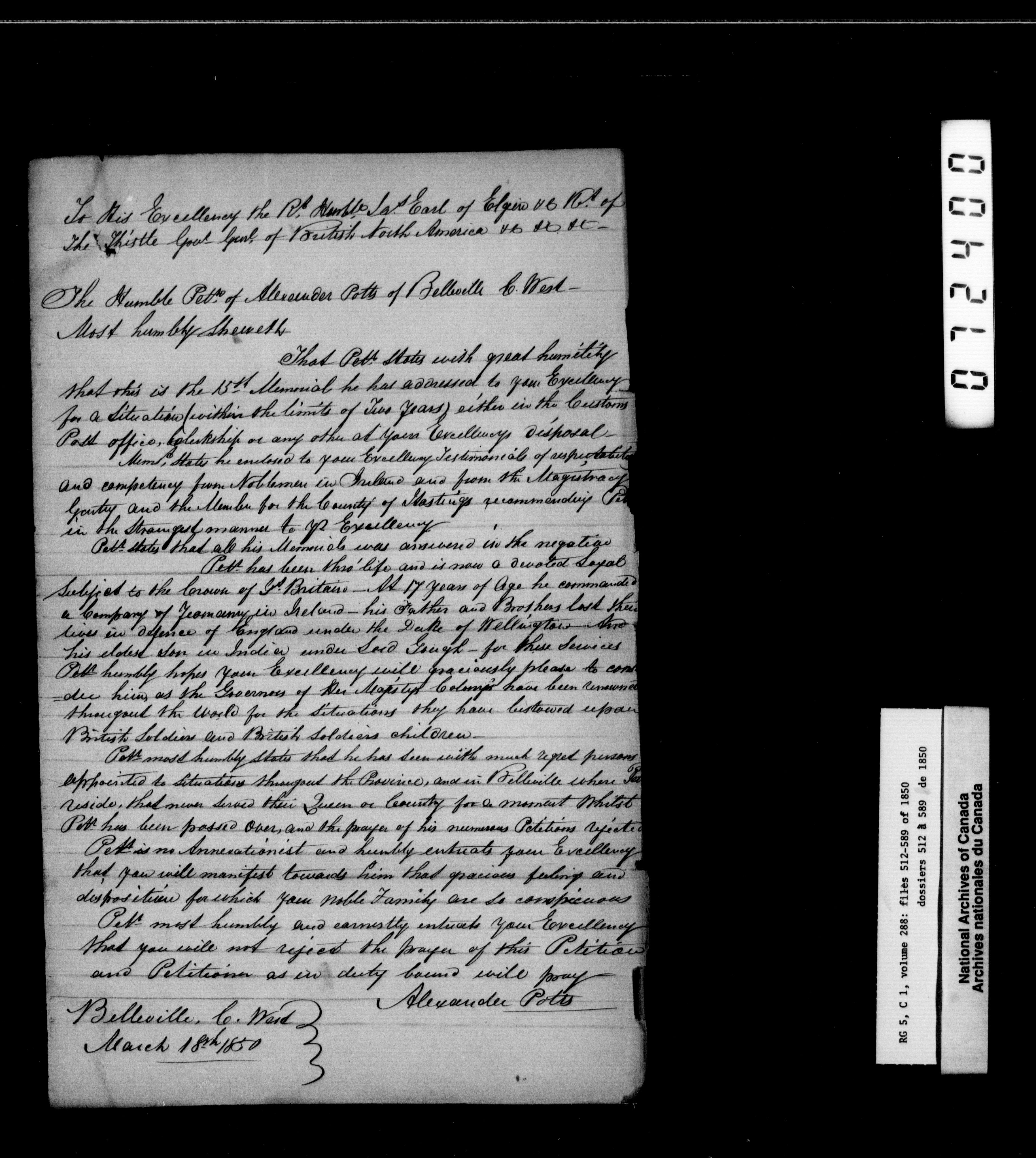Canada West : Provincial Secretary, numbered correspondence files, 1844 to 1867 : H-2401