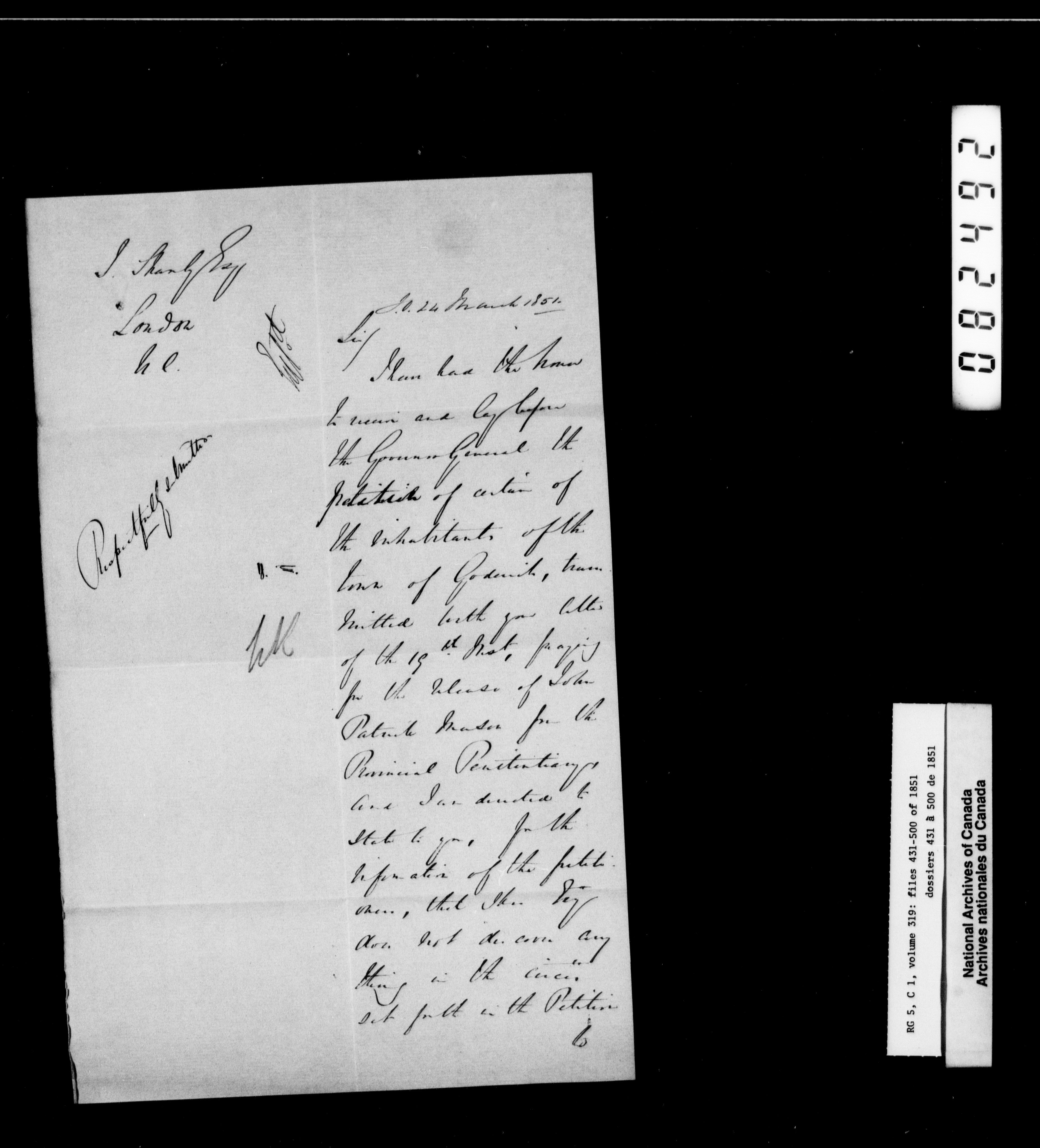 Canada West : Provincial Secretary, numbered correspondence files, 1844 to 1867 - 2407