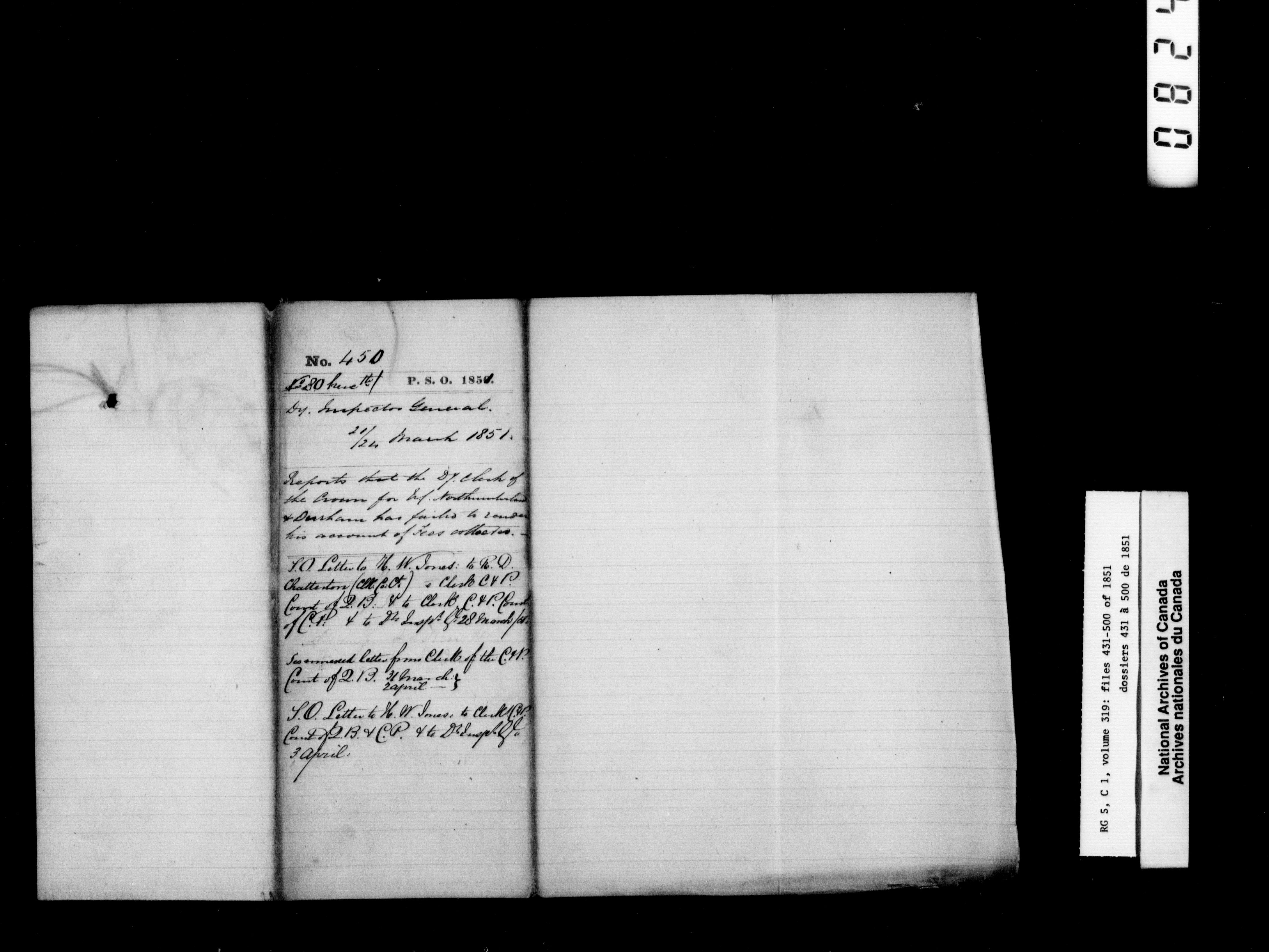 Canada West : Provincial Secretary, numbered correspondence files, 1844 to 1867 - 2407