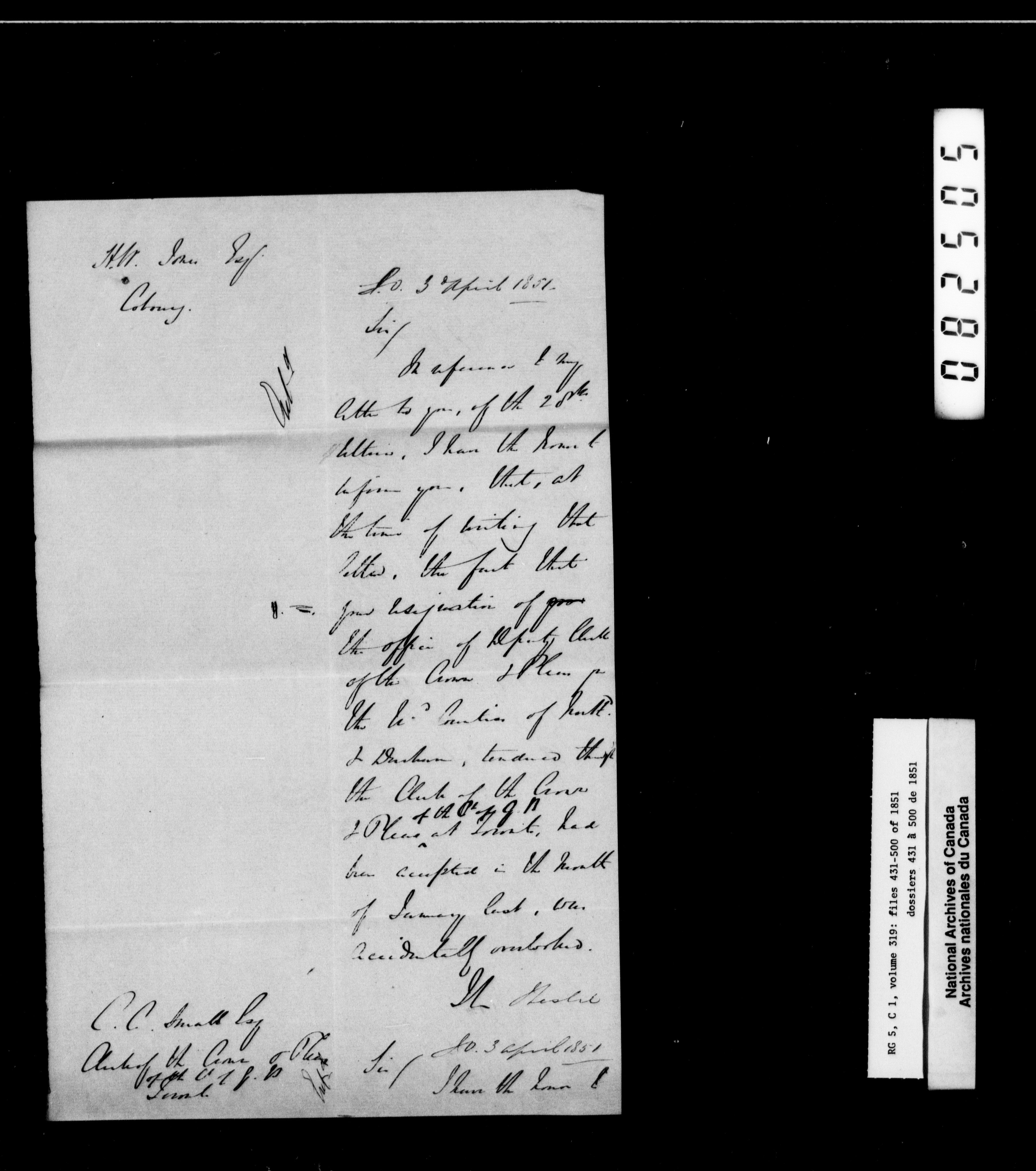Canada West : Provincial Secretary, numbered correspondence files, 1844 to 1867 - 2407