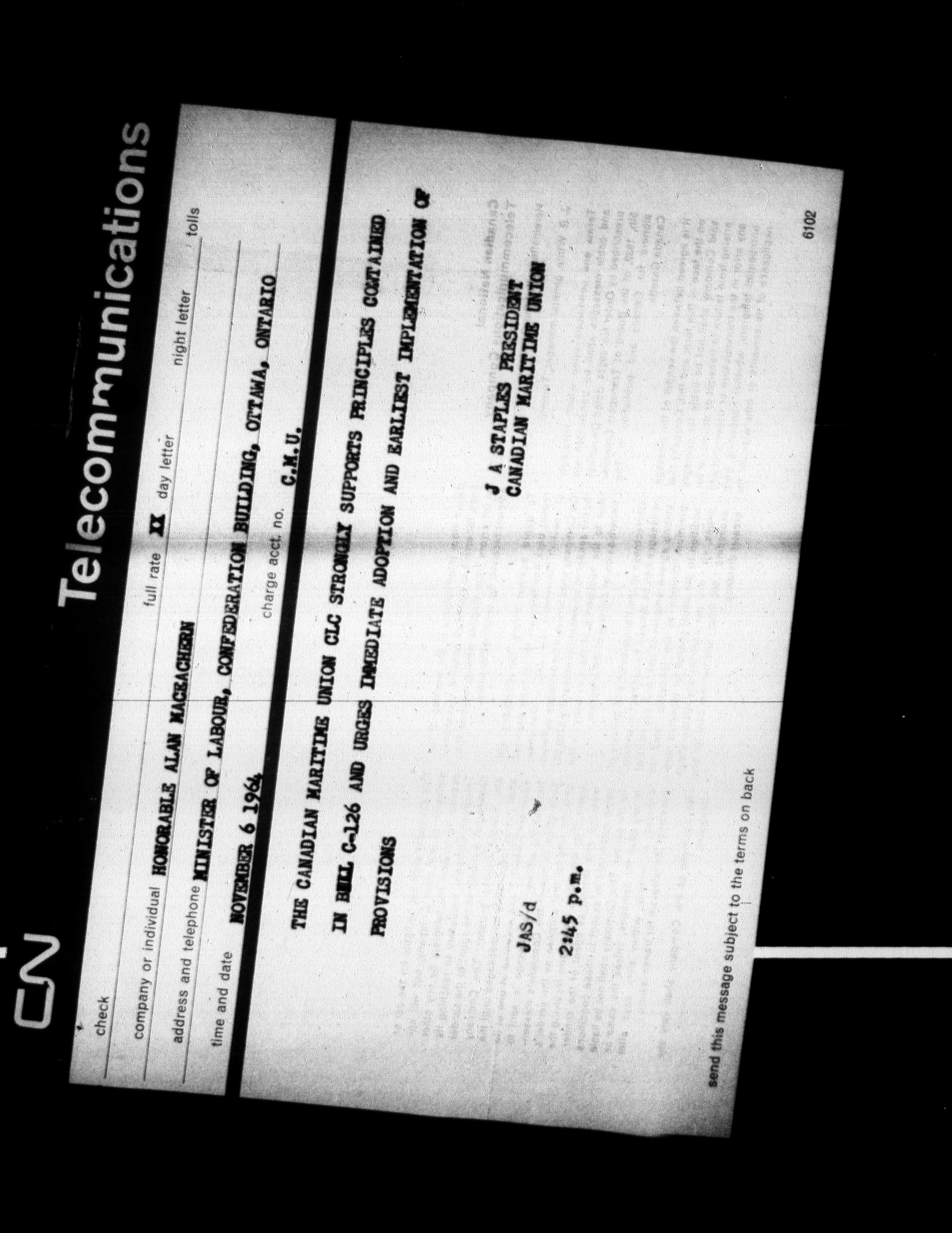 Canadian Labour Congress : Maritime Transportation Unions files : H-241