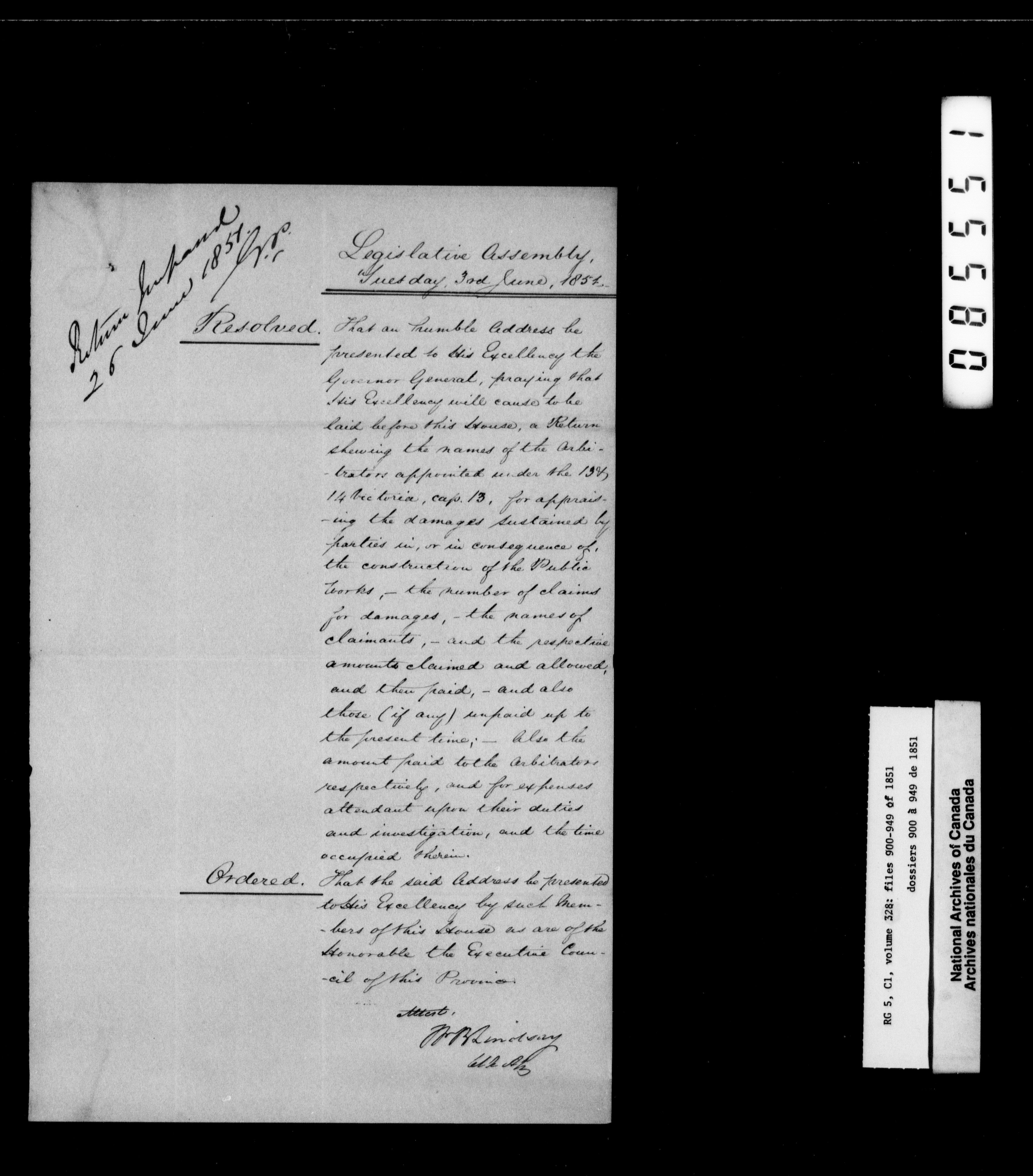 Canada West : Provincial Secretary, numbered correspondence files, 1844 to 1867 - 2410