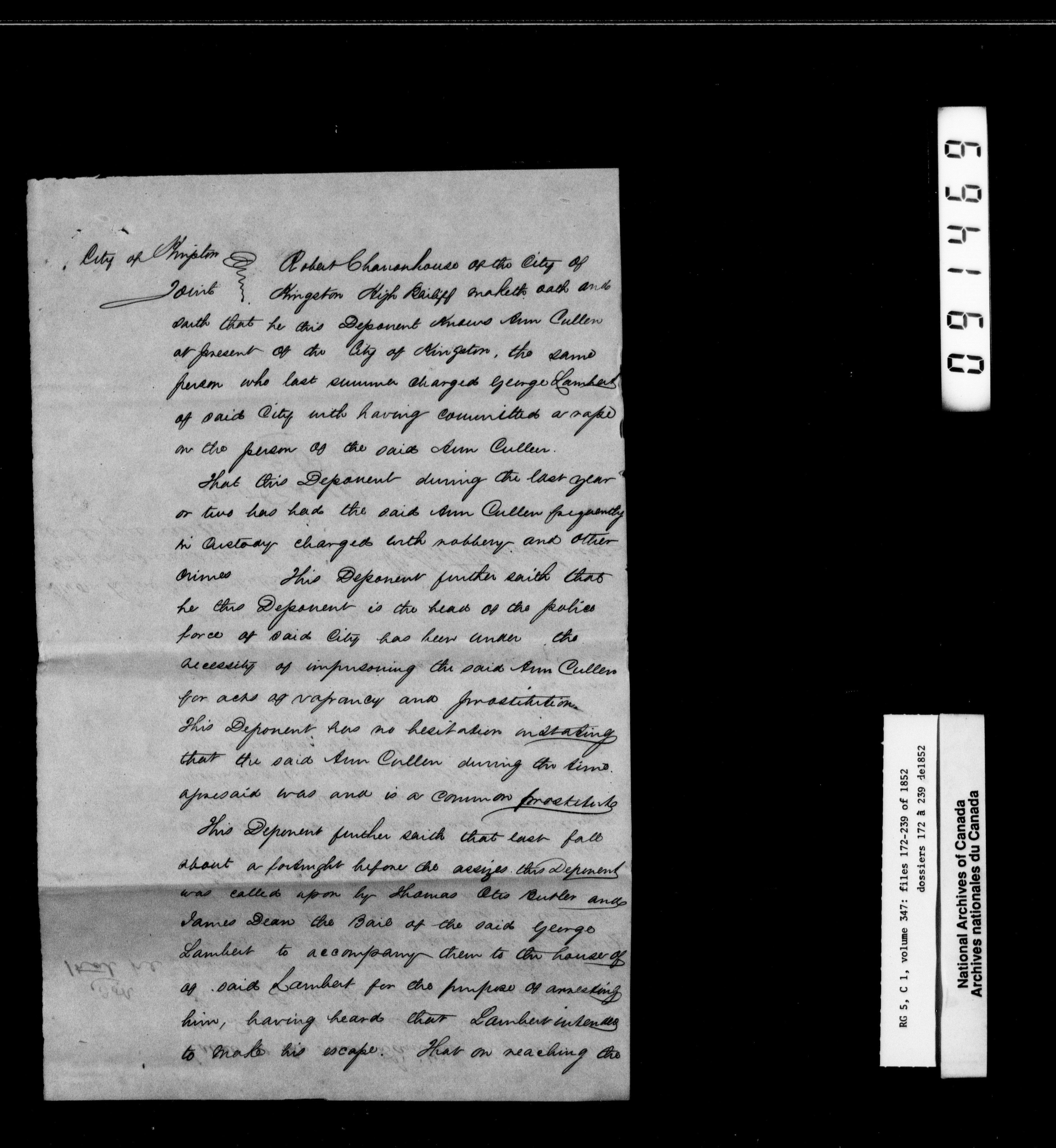 Canada West : Provincial Secretary, numbered correspondence files, 1844 to 1867 - 2413