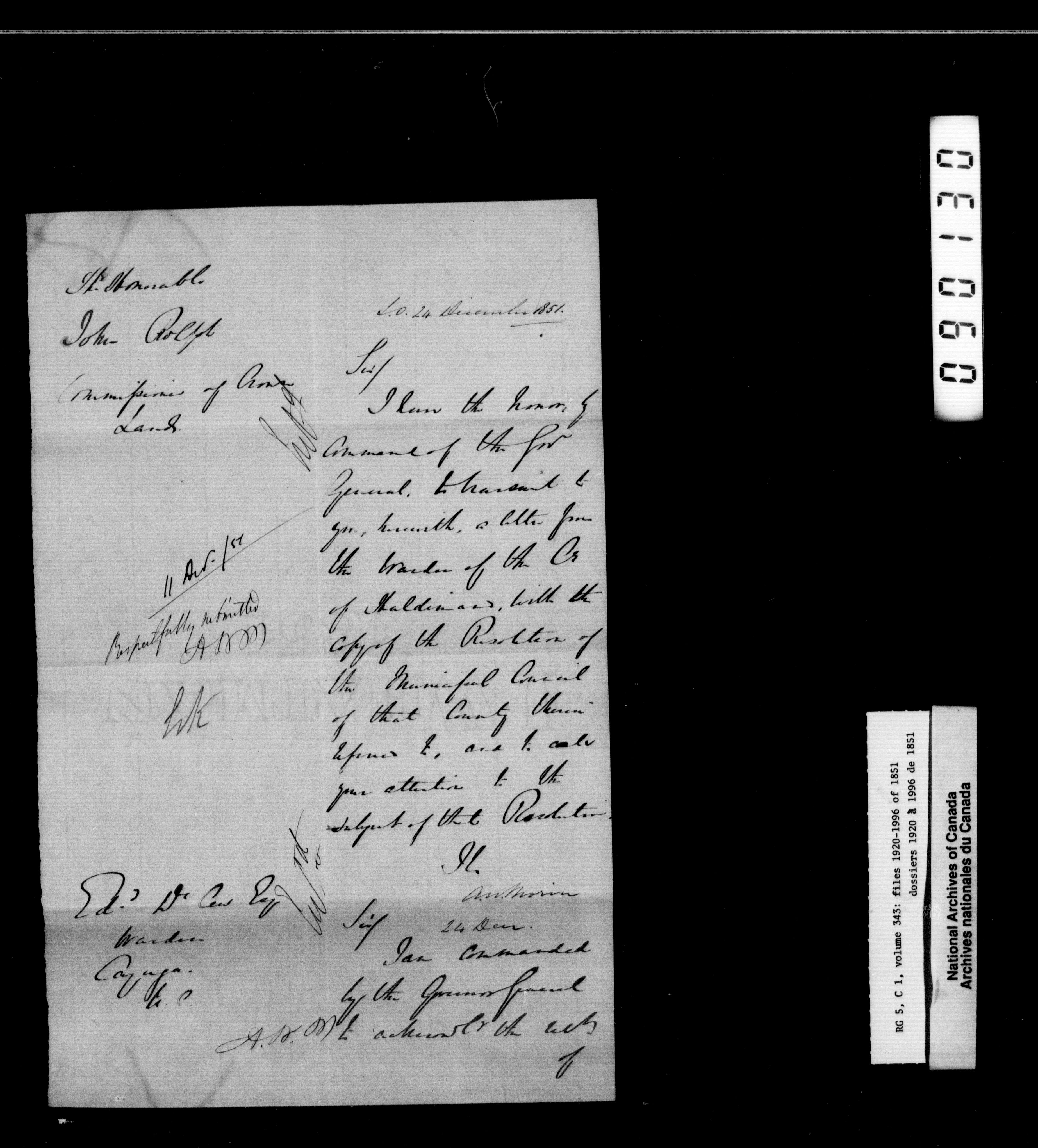 Canada West : Provincial Secretary, numbered correspondence files, 1844 to 1867 - 2413