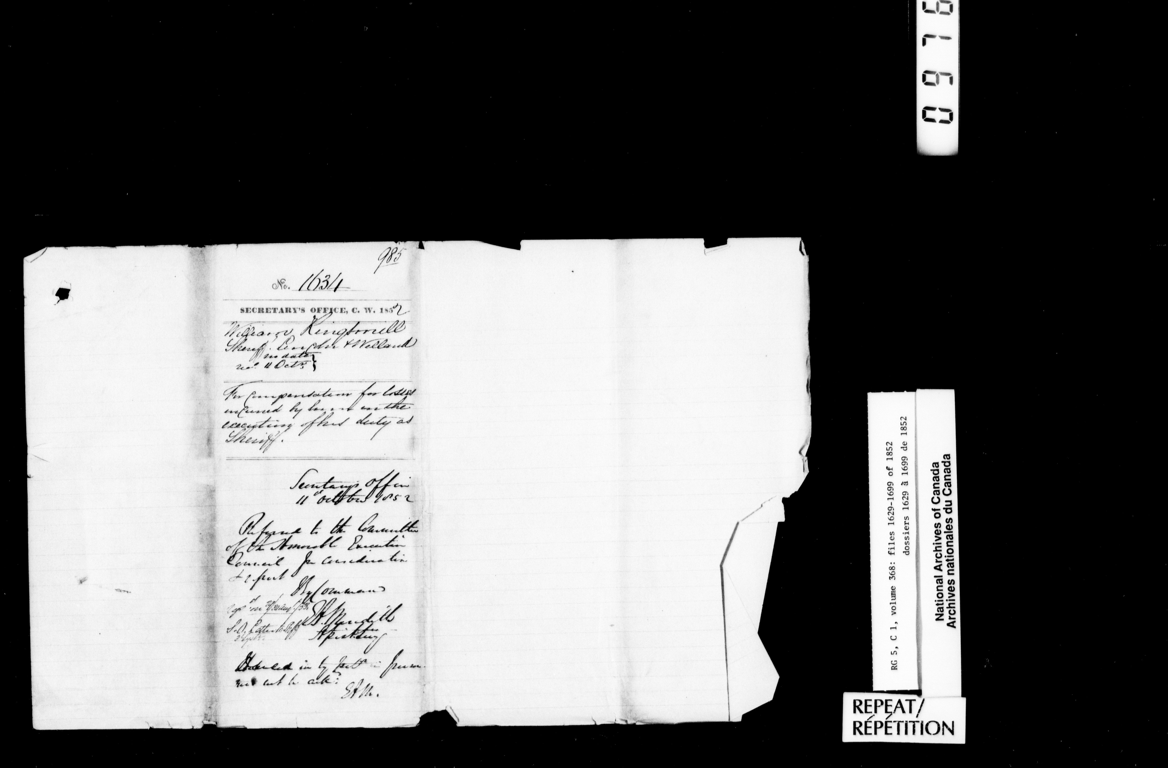 Canada West : Provincial Secretary, numbered correspondence files, 1844 to 1867 - 2417