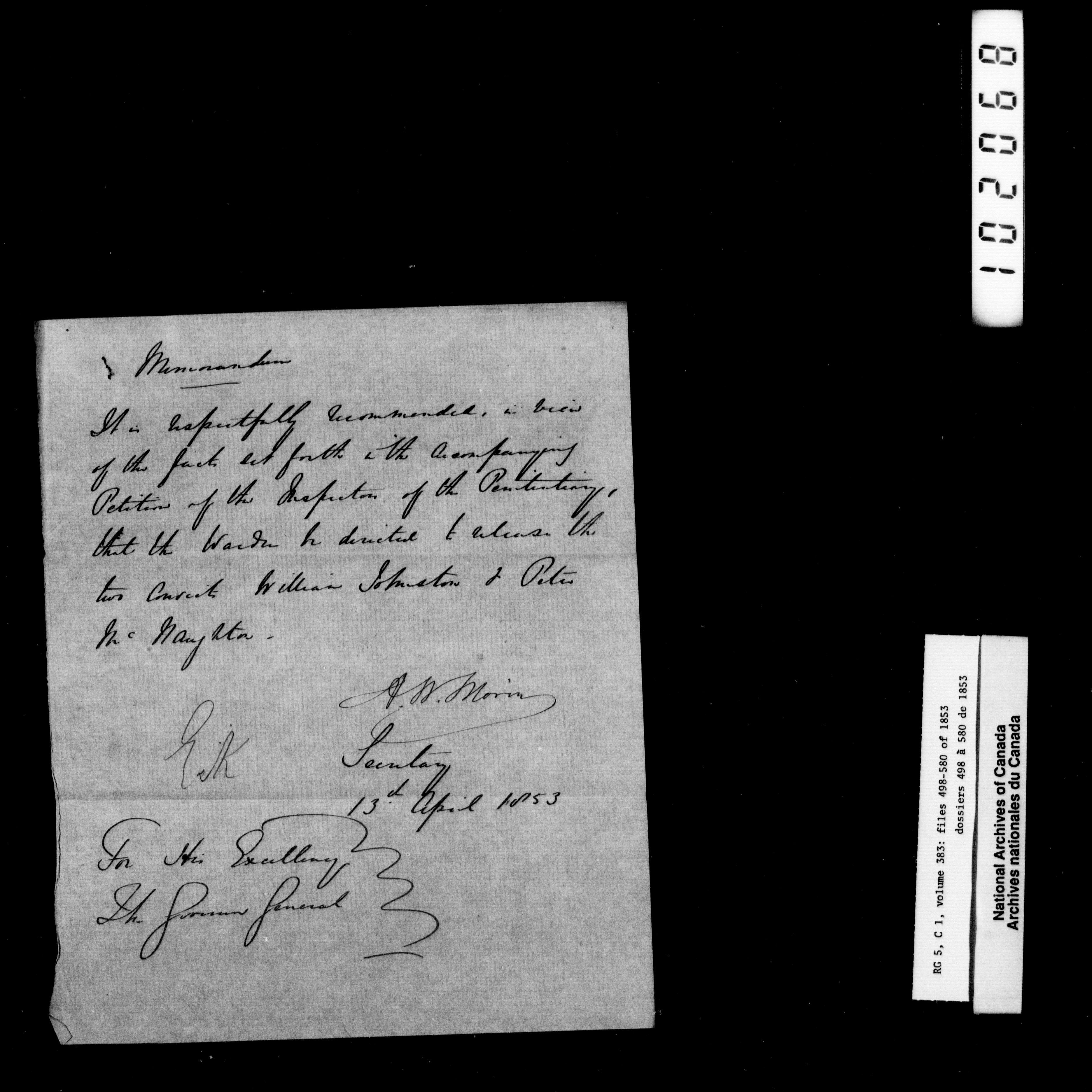 Canada West : Provincial Secretary, numbered correspondence files, 1844 to 1867 - 2420