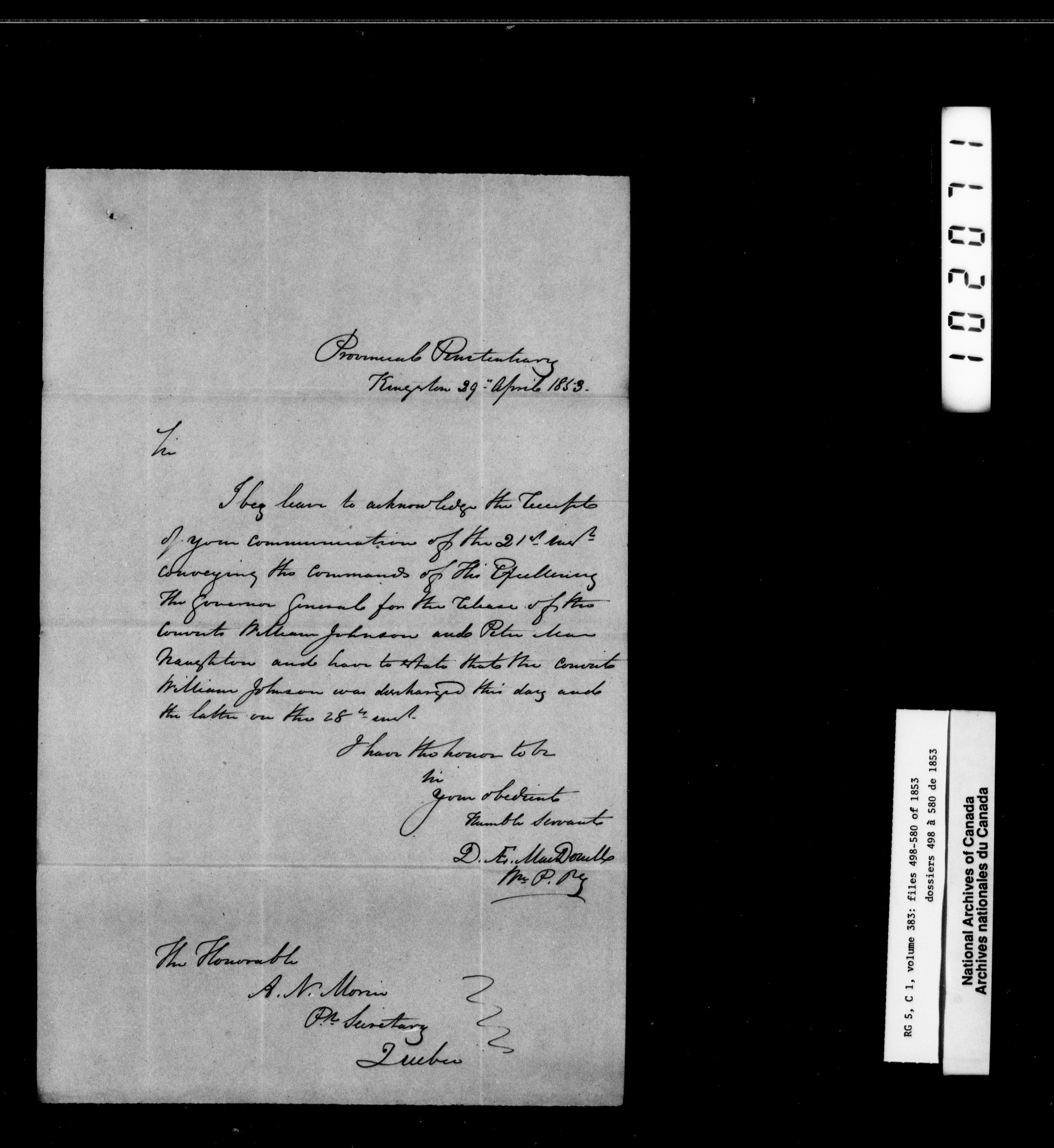 Canada West : Provincial Secretary, numbered correspondence files, 1844 to 1867 - 2420