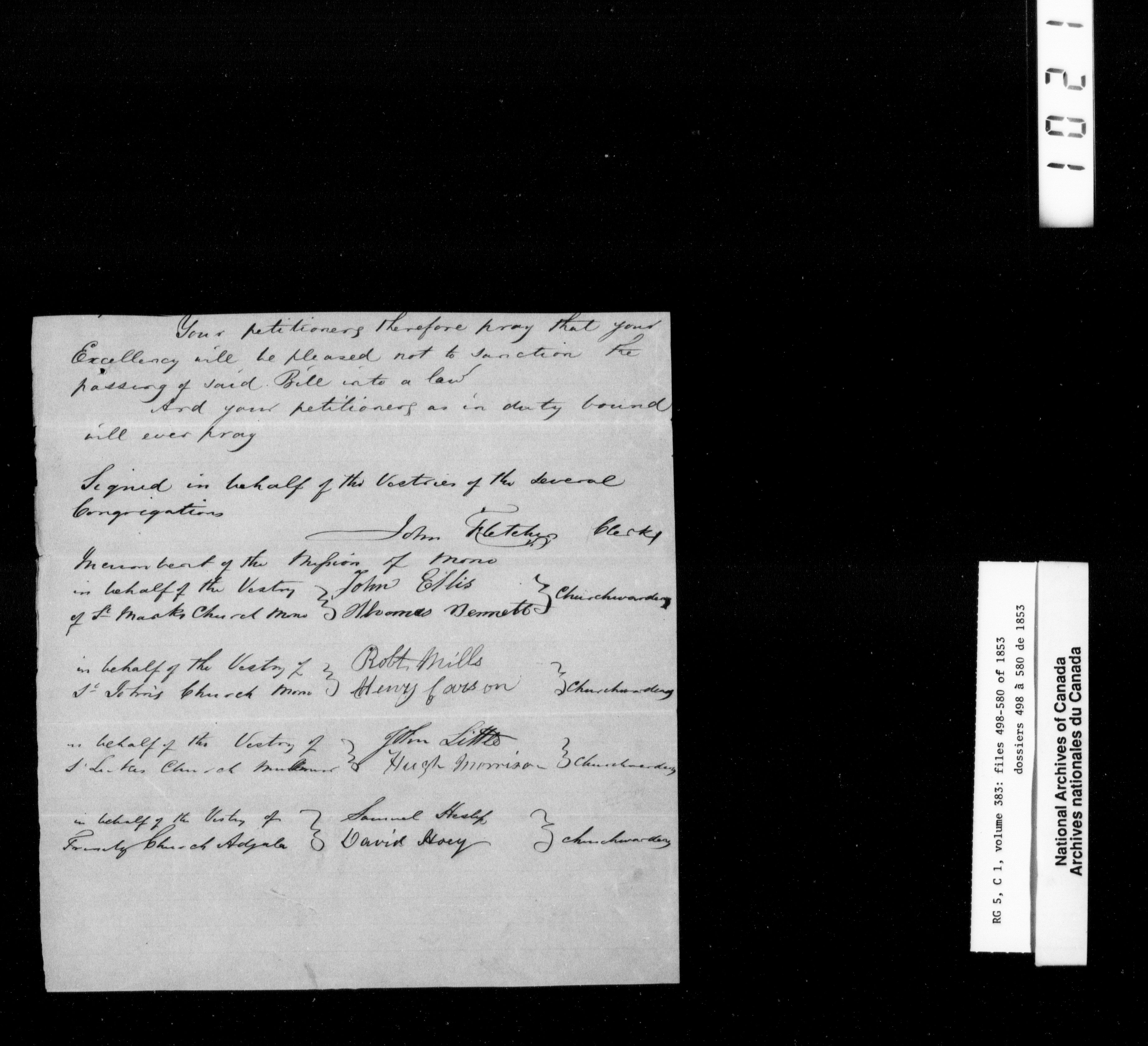 Canada West : Provincial Secretary, numbered correspondence files, 1844 to 1867 - 2421