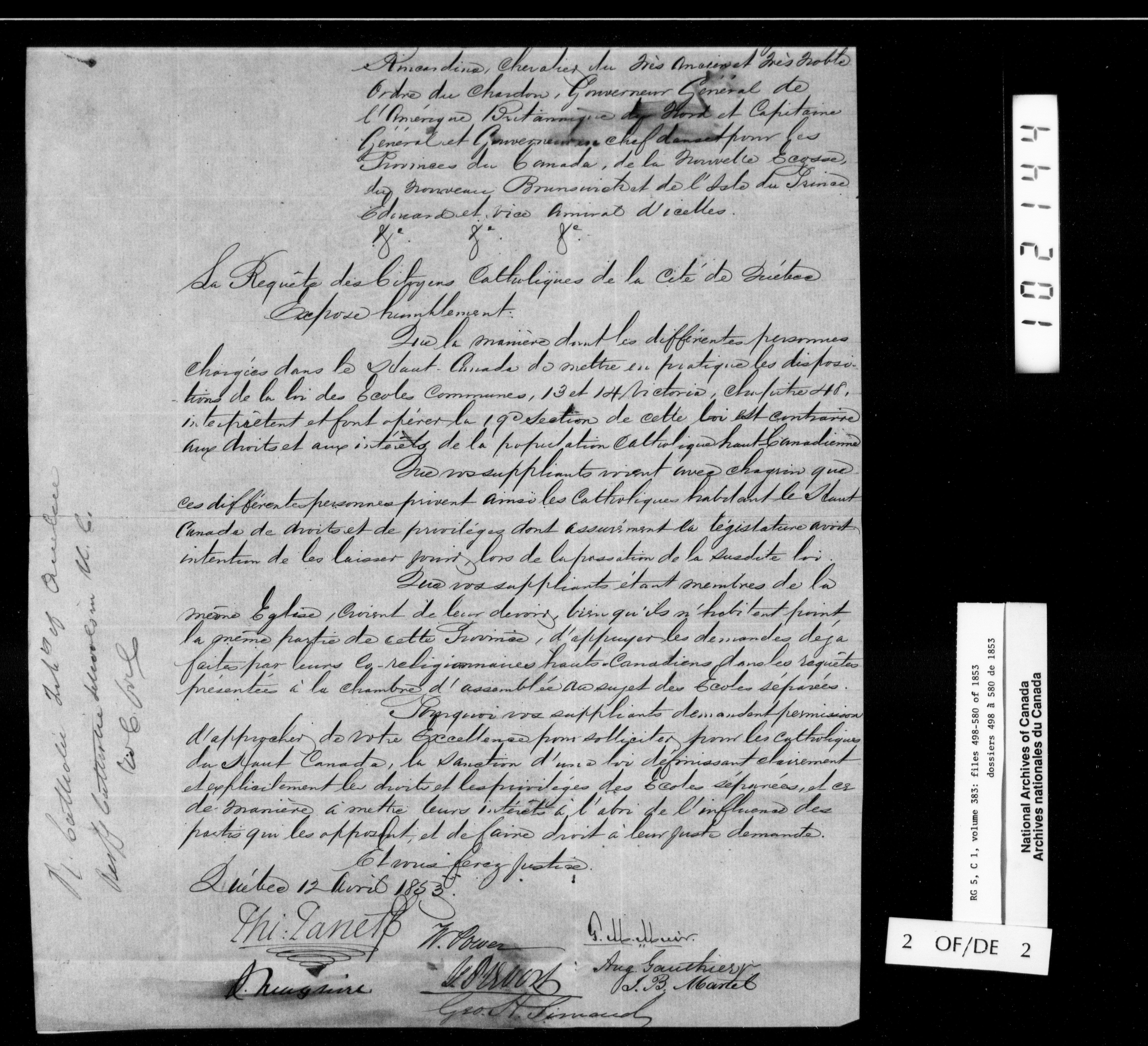 Canada West : Provincial Secretary, numbered correspondence files, 1844 to 1867 : H-2421