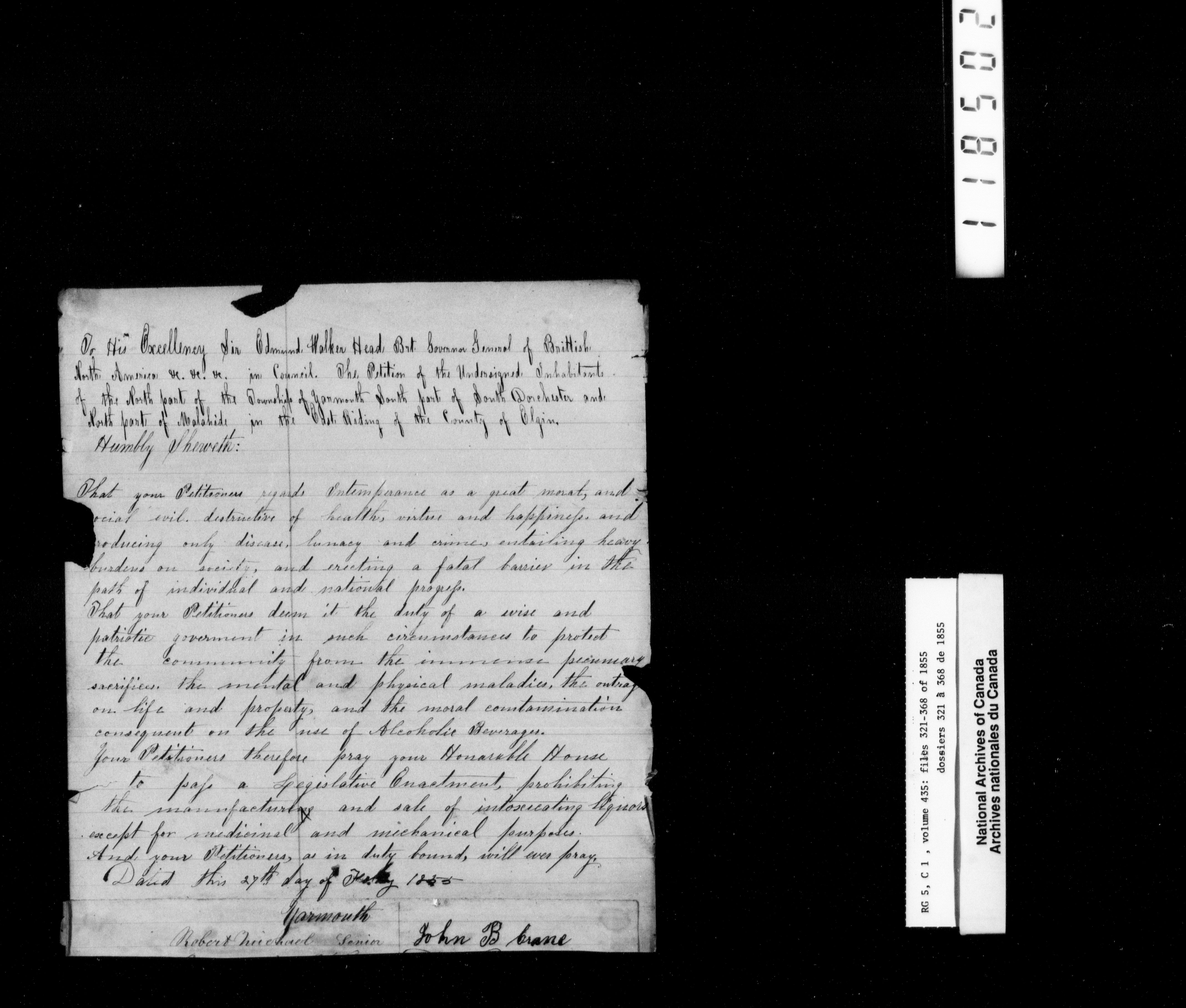 Canada West : Provincial Secretary, numbered correspondence files, 1844 to 1867 - 2432