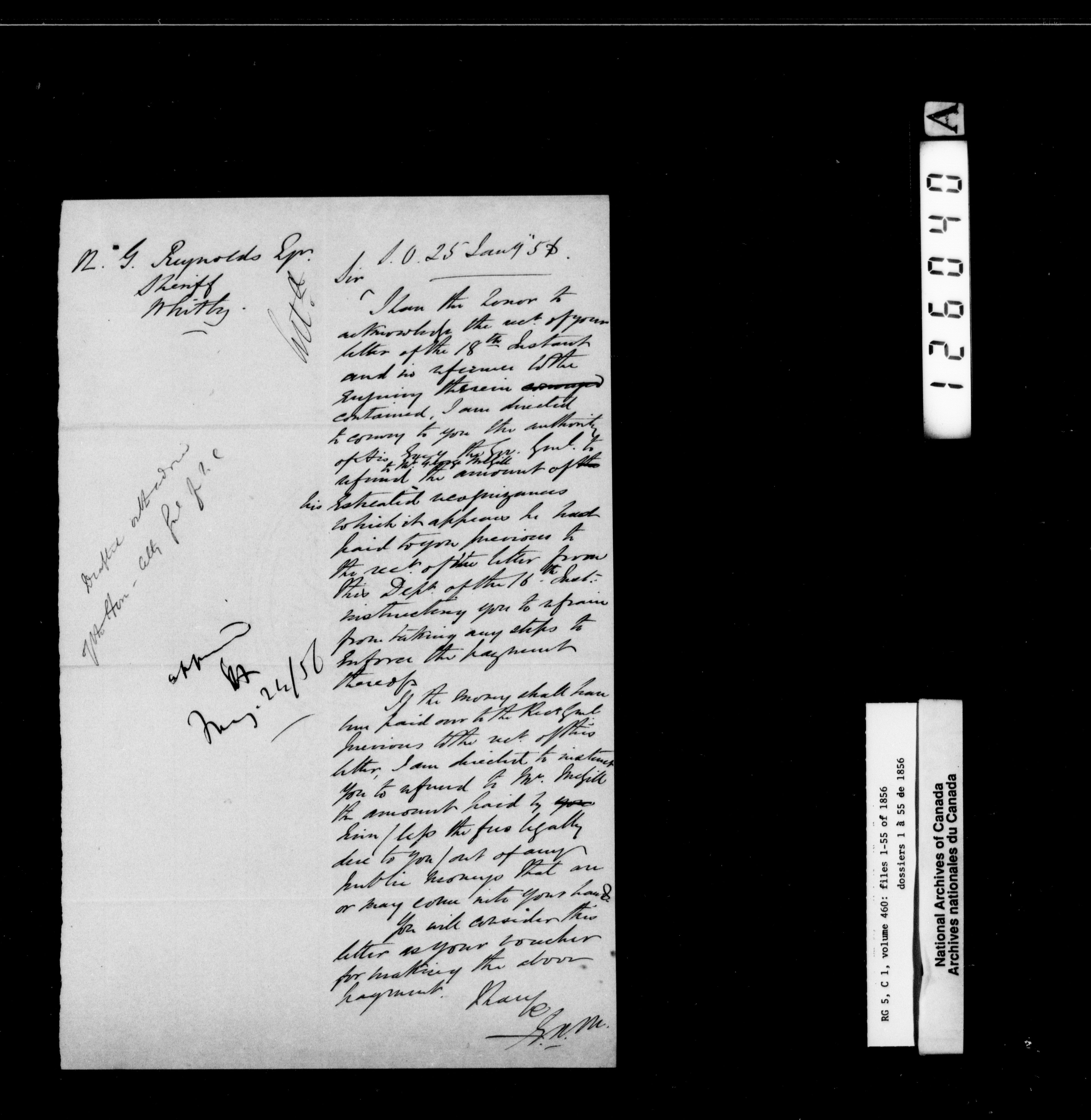 Canada West : Provincial Secretary, numbered correspondence files, 1844 to 1867 - 2437