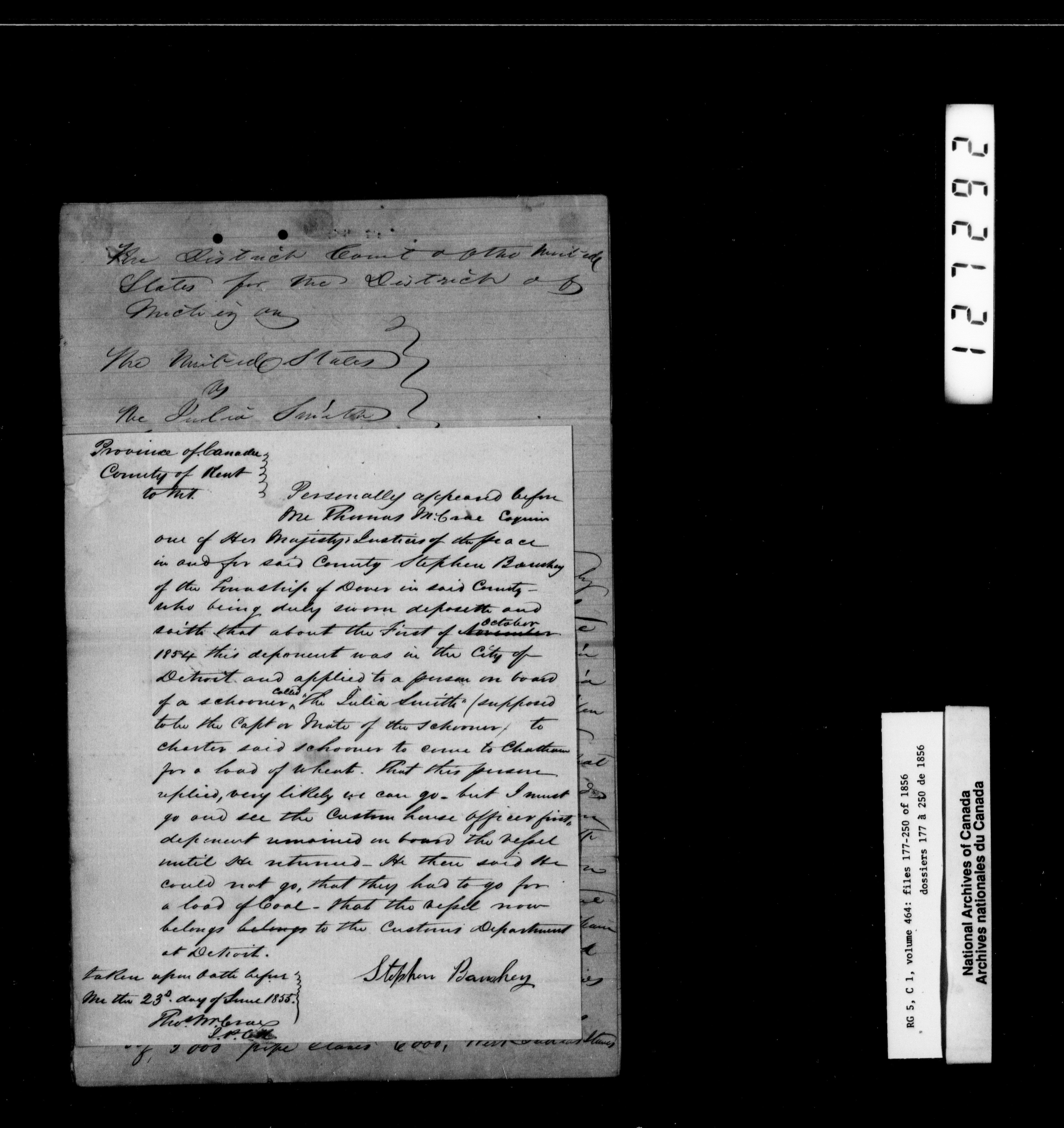 Canada West : Provincial Secretary, numbered correspondence files, 1844 to 1867 - 2437