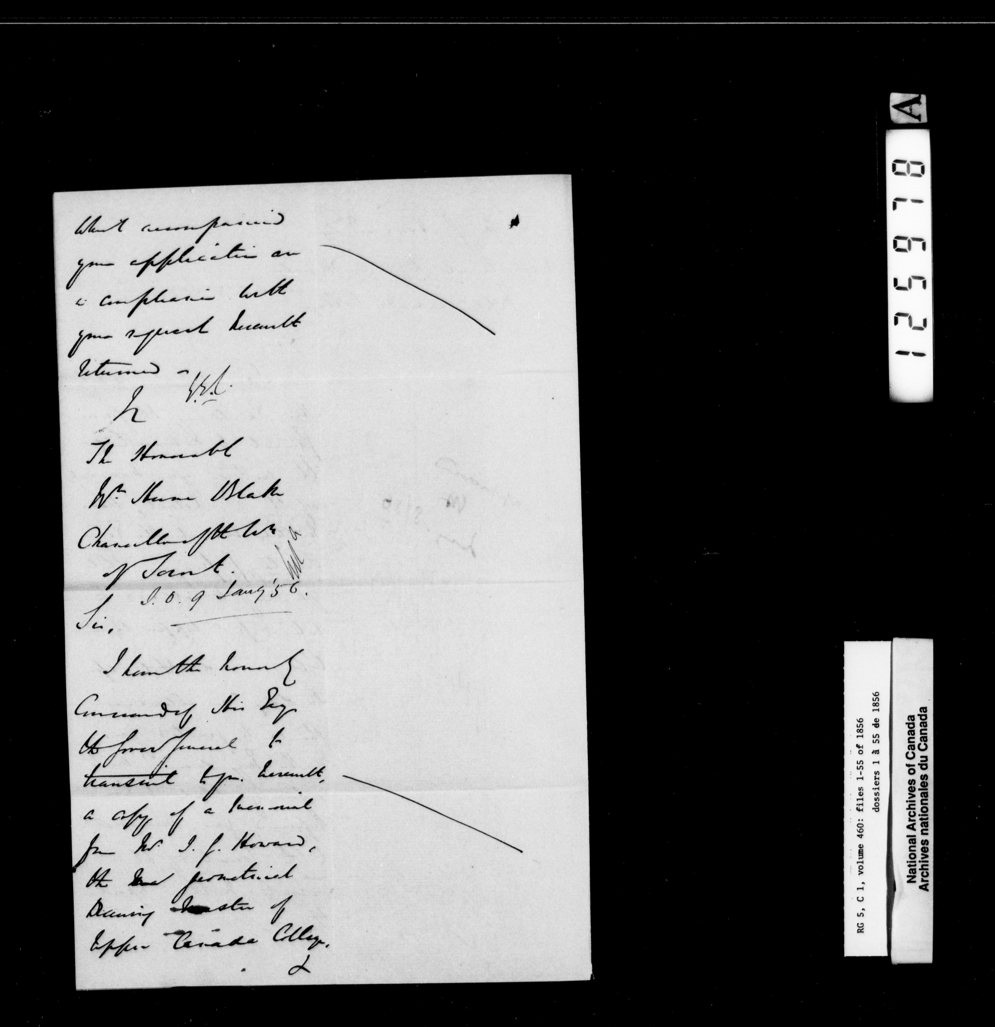 Canada West : Provincial Secretary, numbered correspondence files, 1844 to 1867 : H-2437
