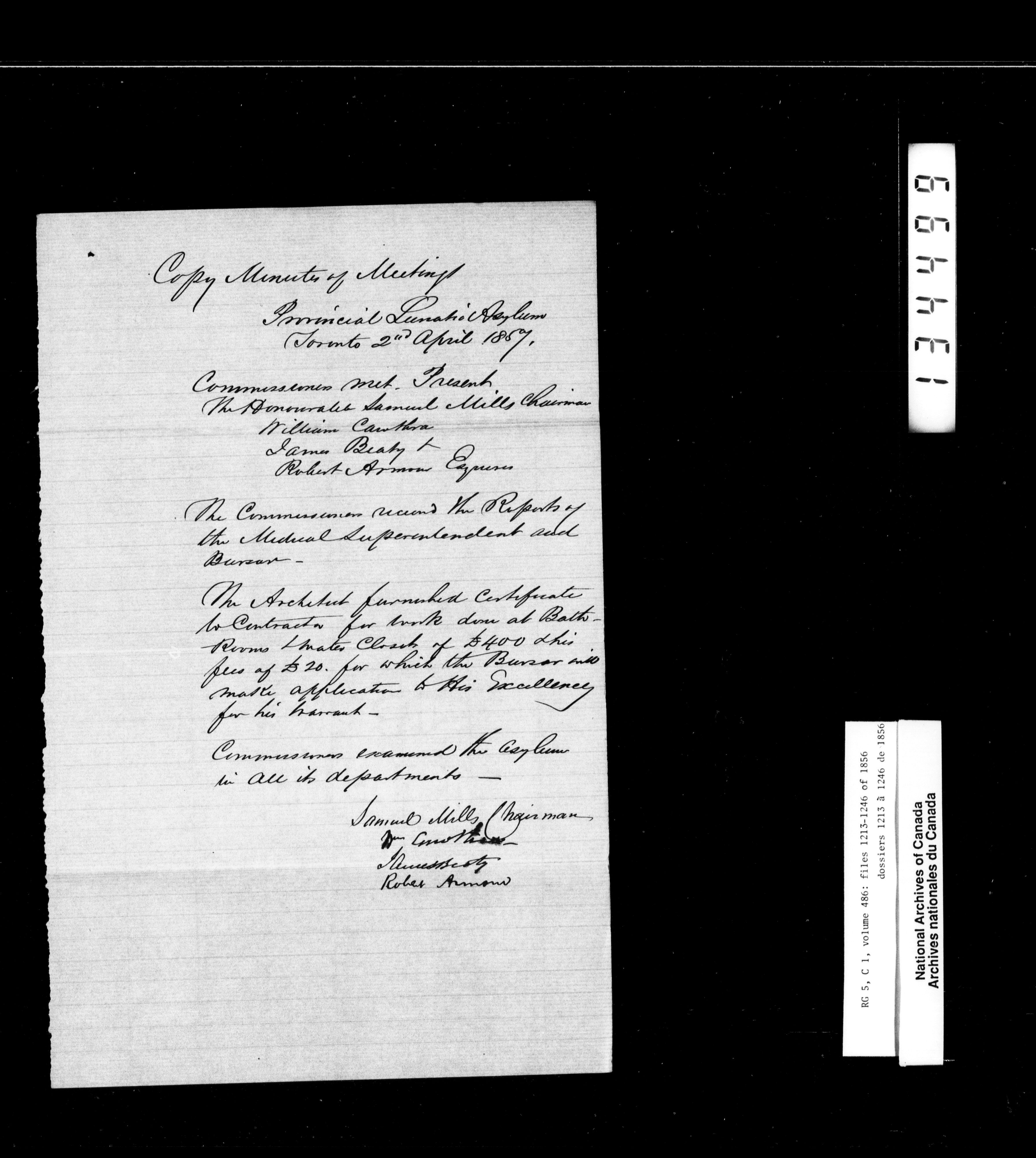 Canada West : Provincial Secretary, numbered correspondence files, 1844 to 1867 : H-2443