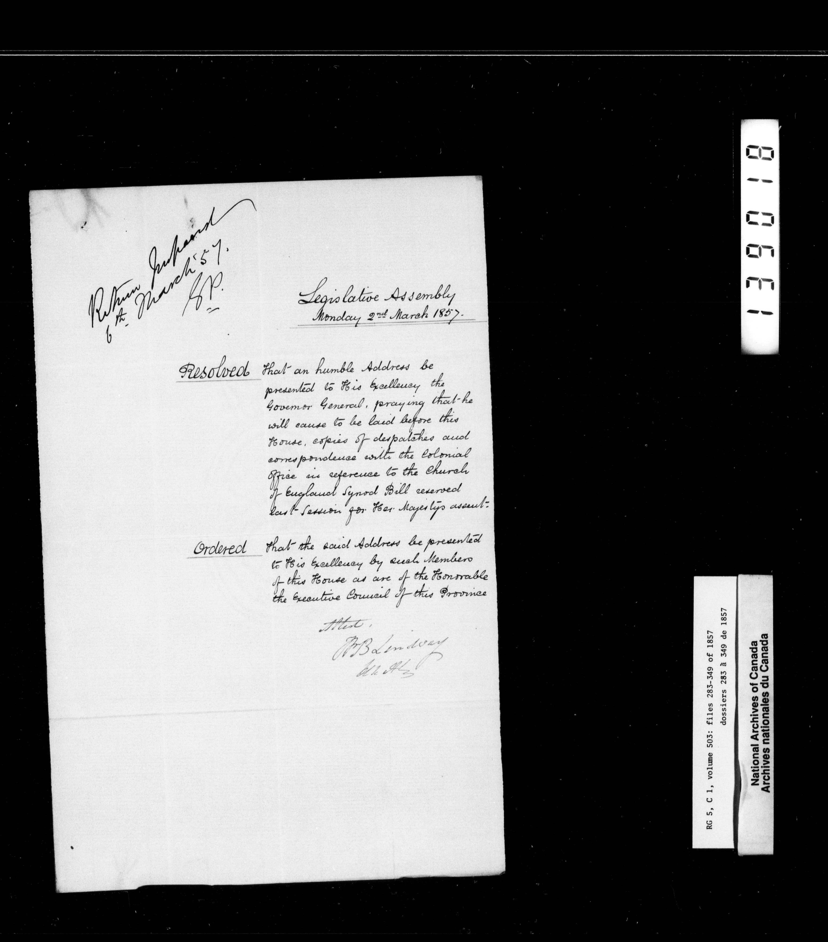 Canada West : Provincial Secretary, numbered correspondence files, 1844 to 1867 - 2446