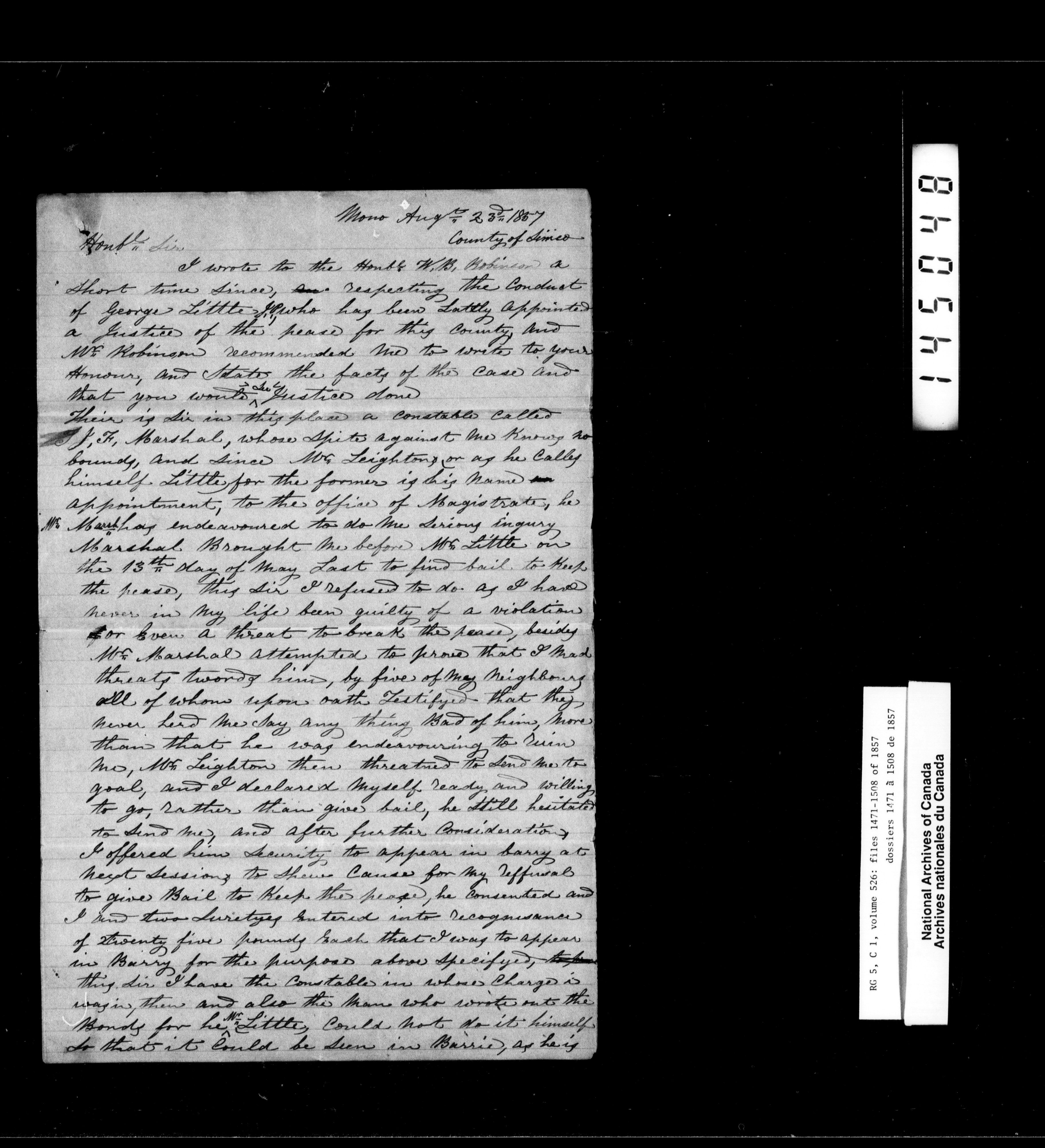 Canada West : Provincial Secretary, numbered correspondence files, 1844 to 1867 : H-2450