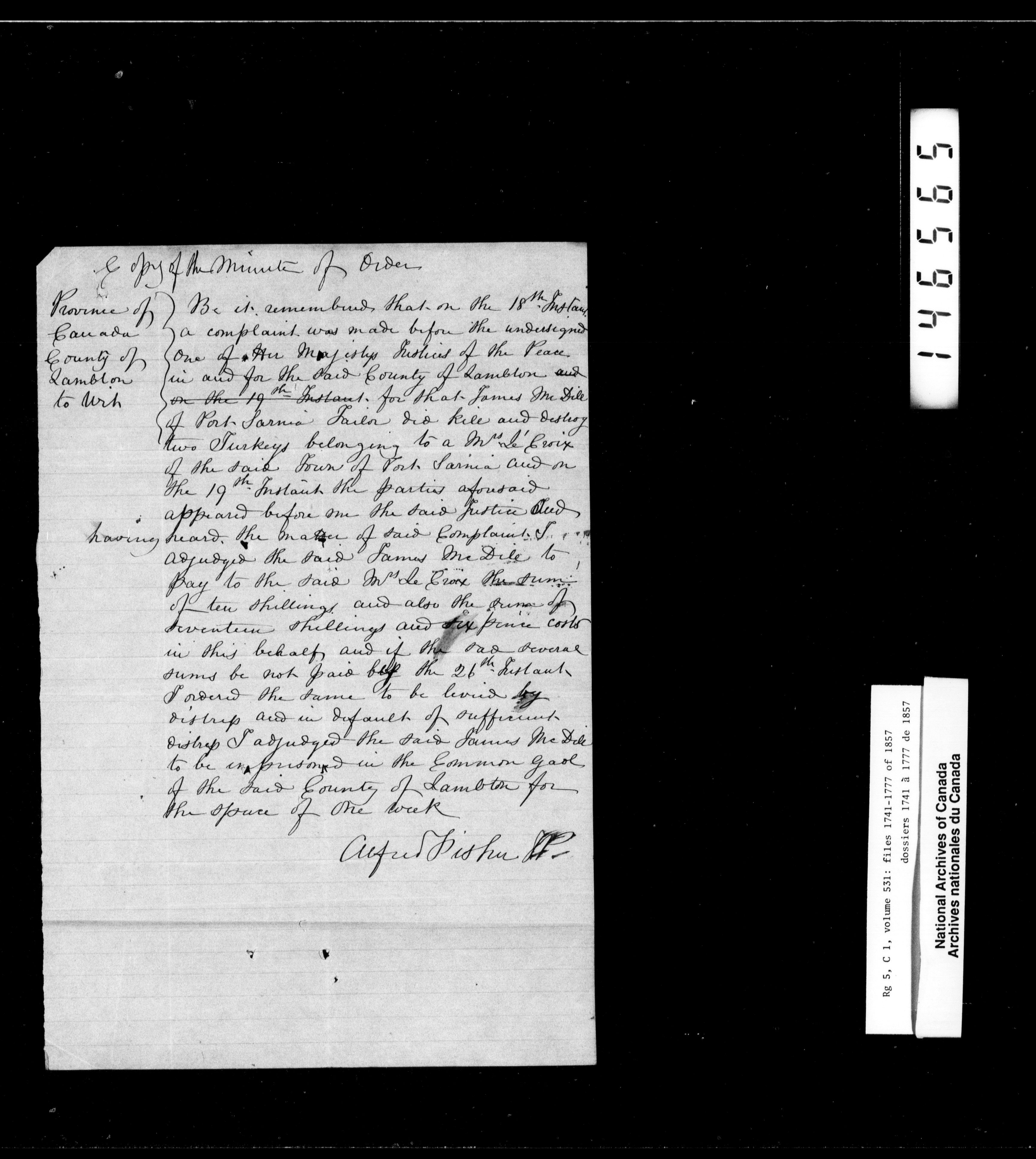 Canada West : Provincial Secretary, numbered correspondence files, 1844 to 1867 - 2451