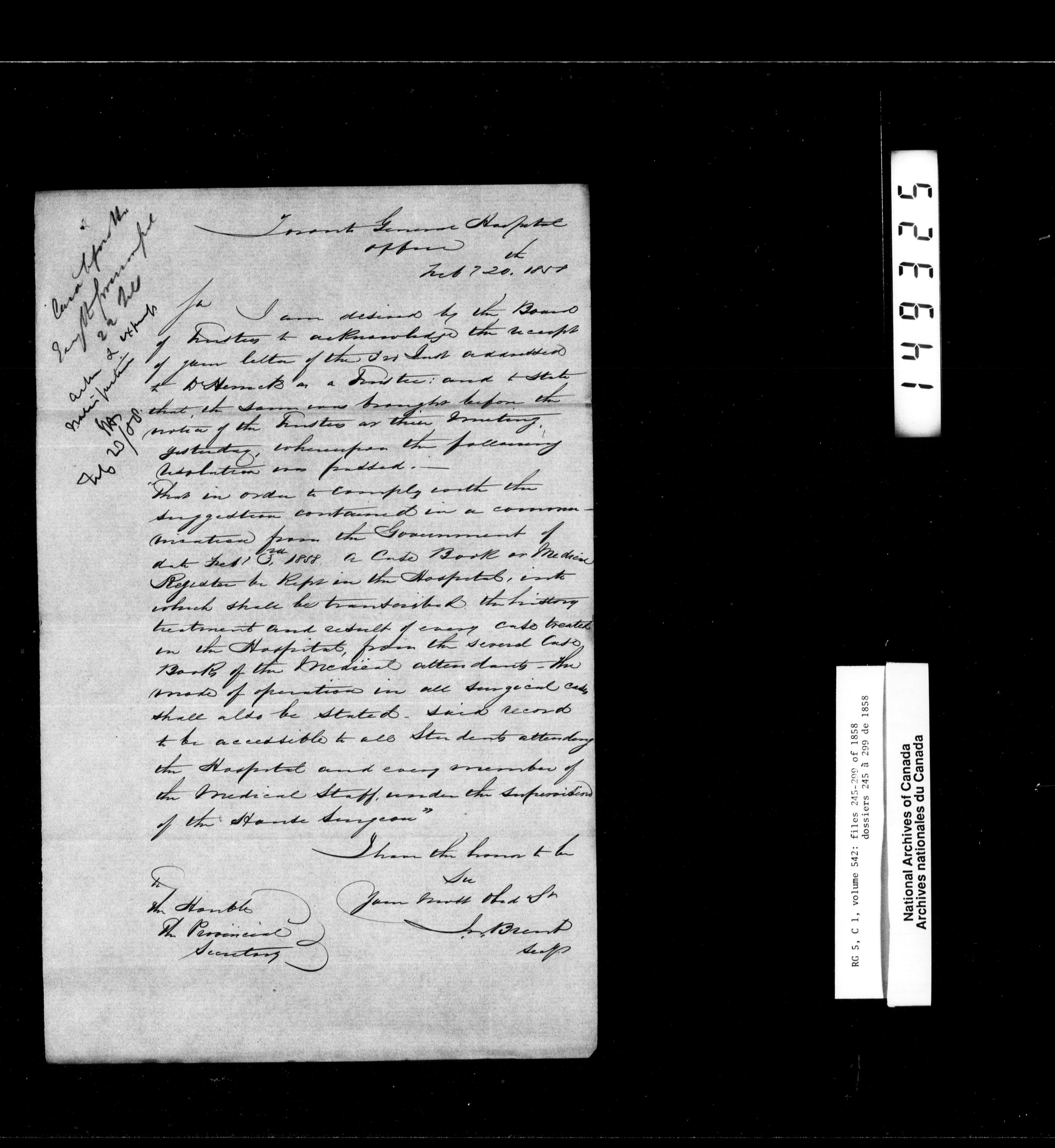 Canada West : Provincial Secretary, numbered correspondence files, 1844 to 1867 - 2452
