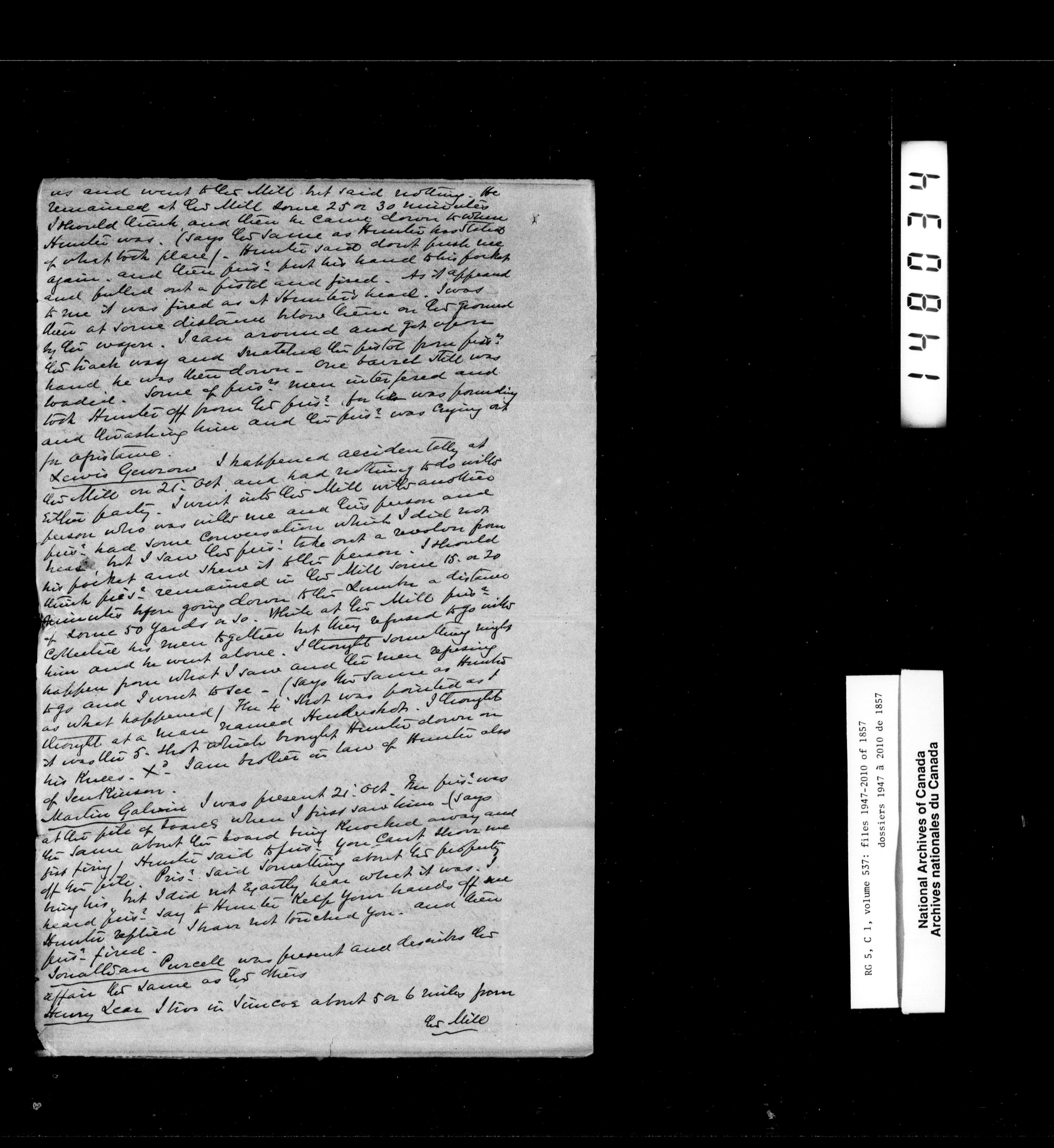 Canada West : Provincial Secretary, numbered correspondence files, 1844 to 1867 : H-2452