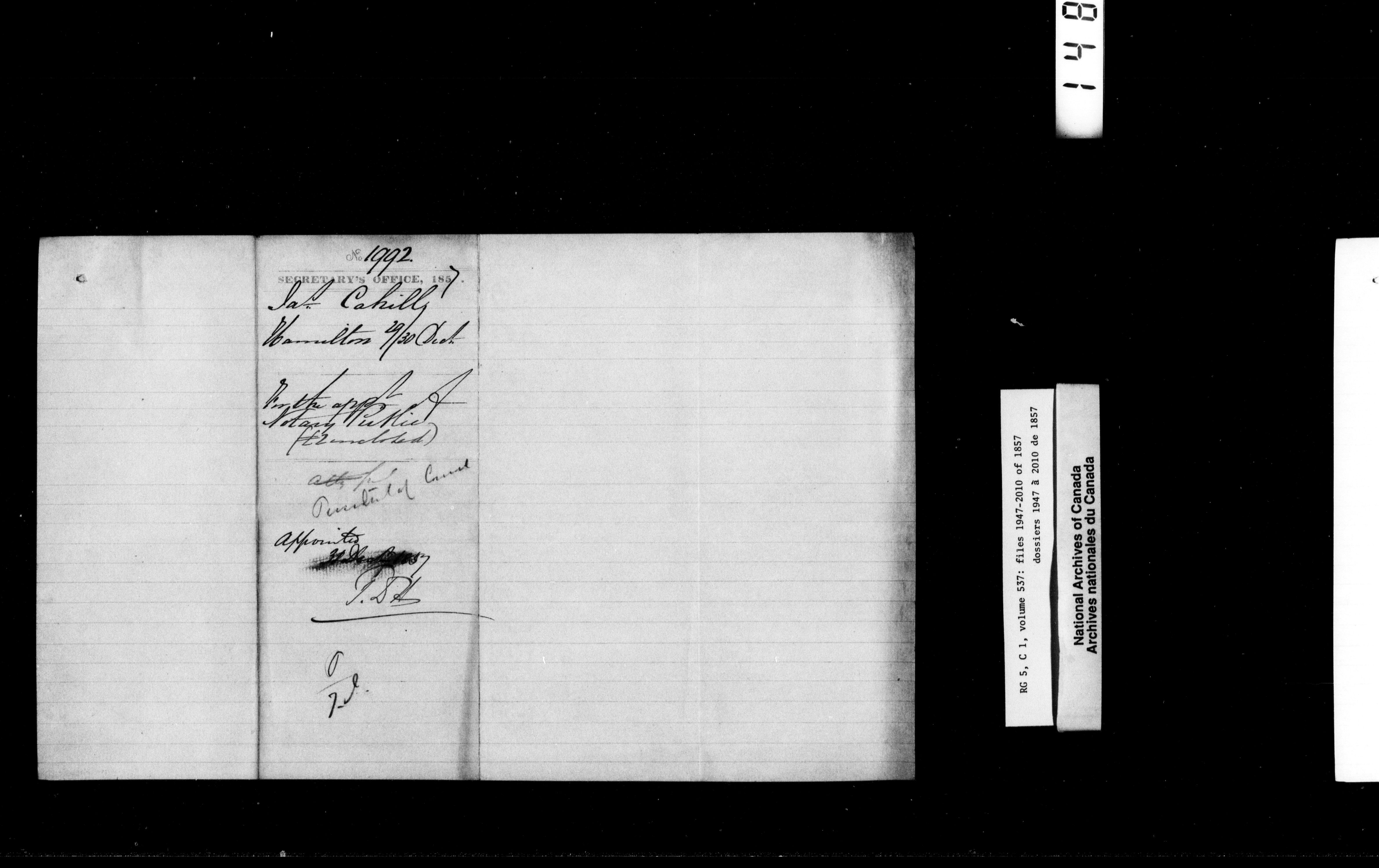 Canada West : Provincial Secretary, numbered correspondence files, 1844 to 1867 : H-2452