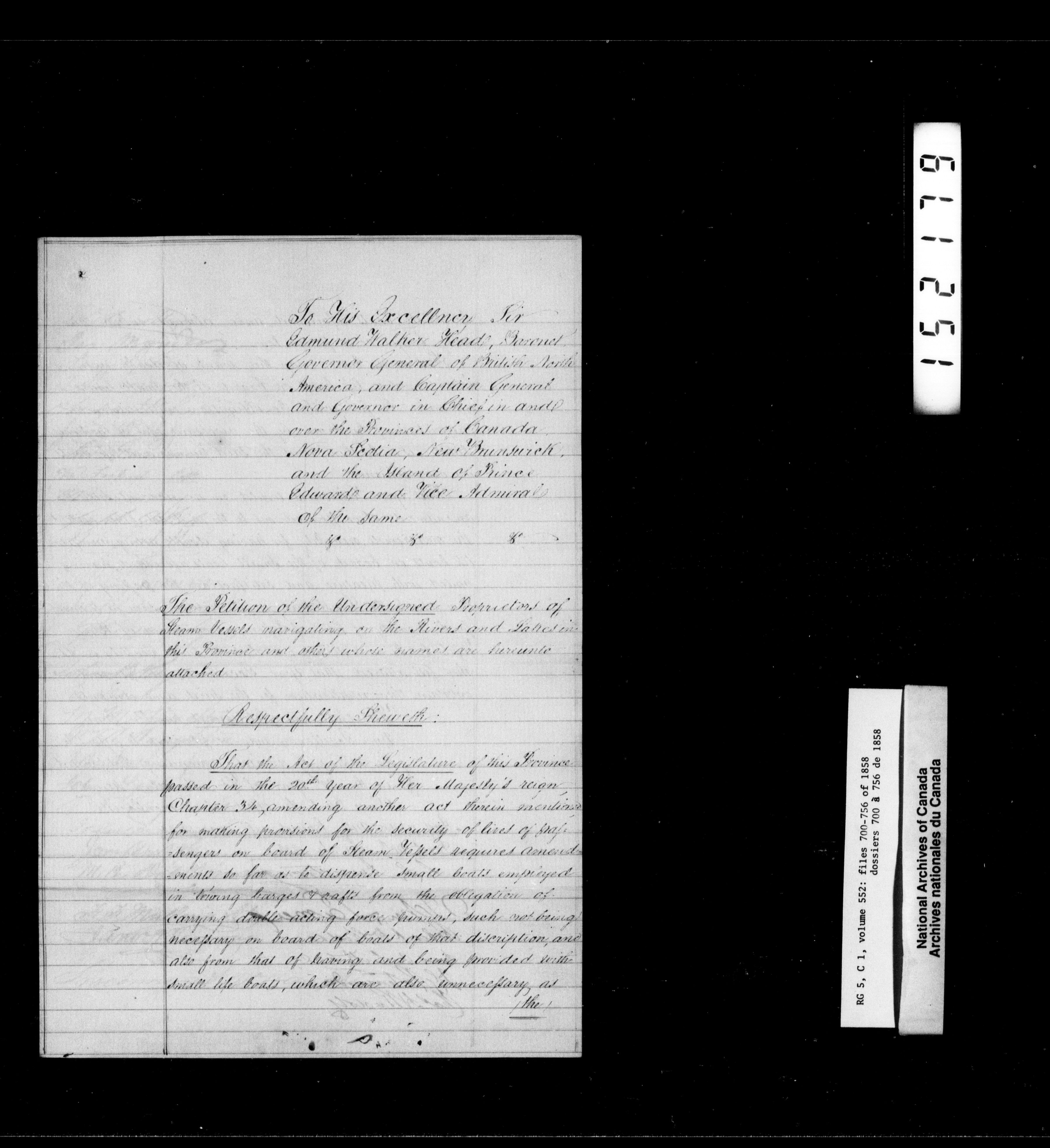 Canada West : Provincial Secretary, numbered correspondence files, 1844 to 1867 : H-2455