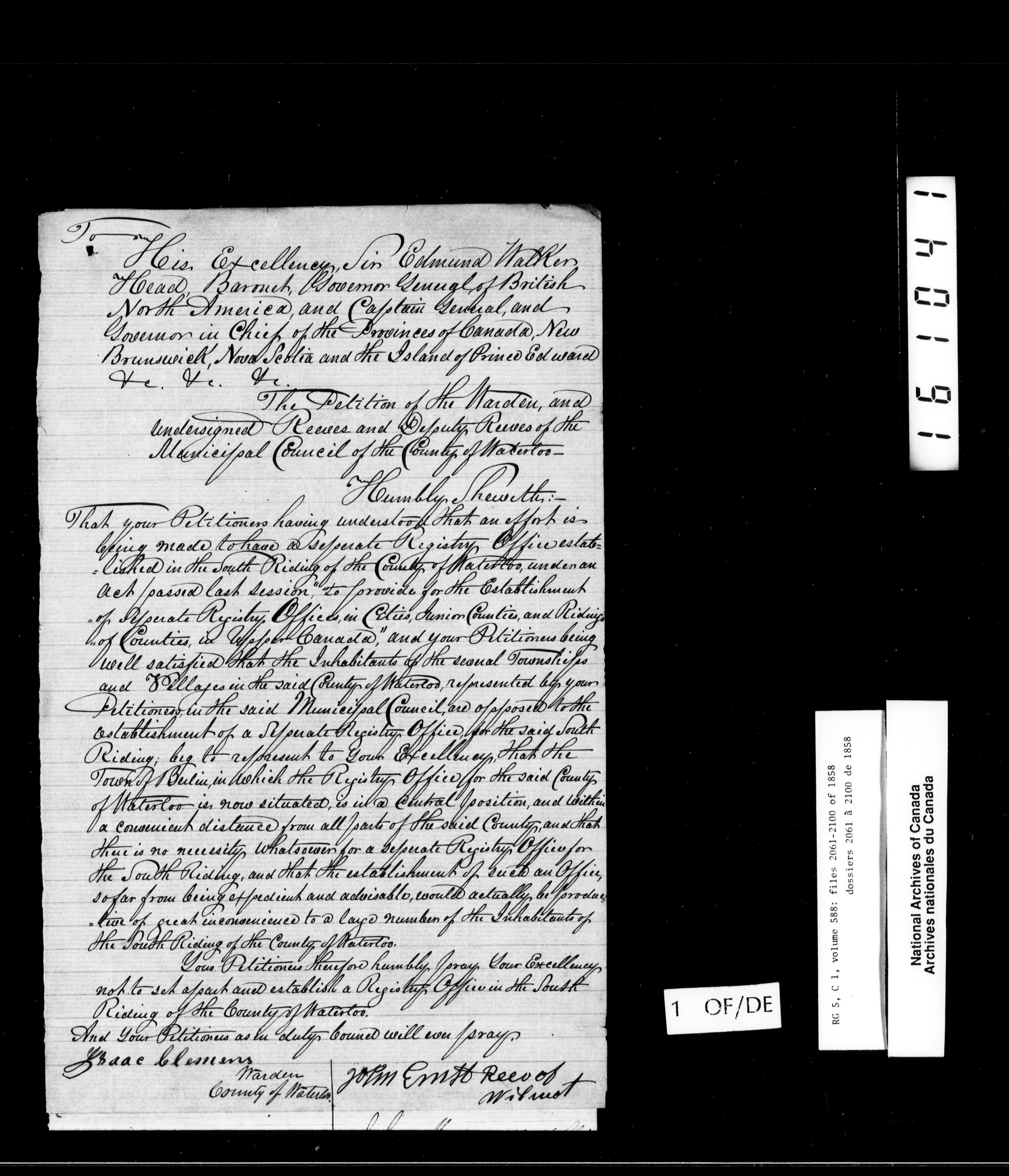 Canada West : Provincial Secretary, numbered correspondence files, 1844 to 1867 - 2461