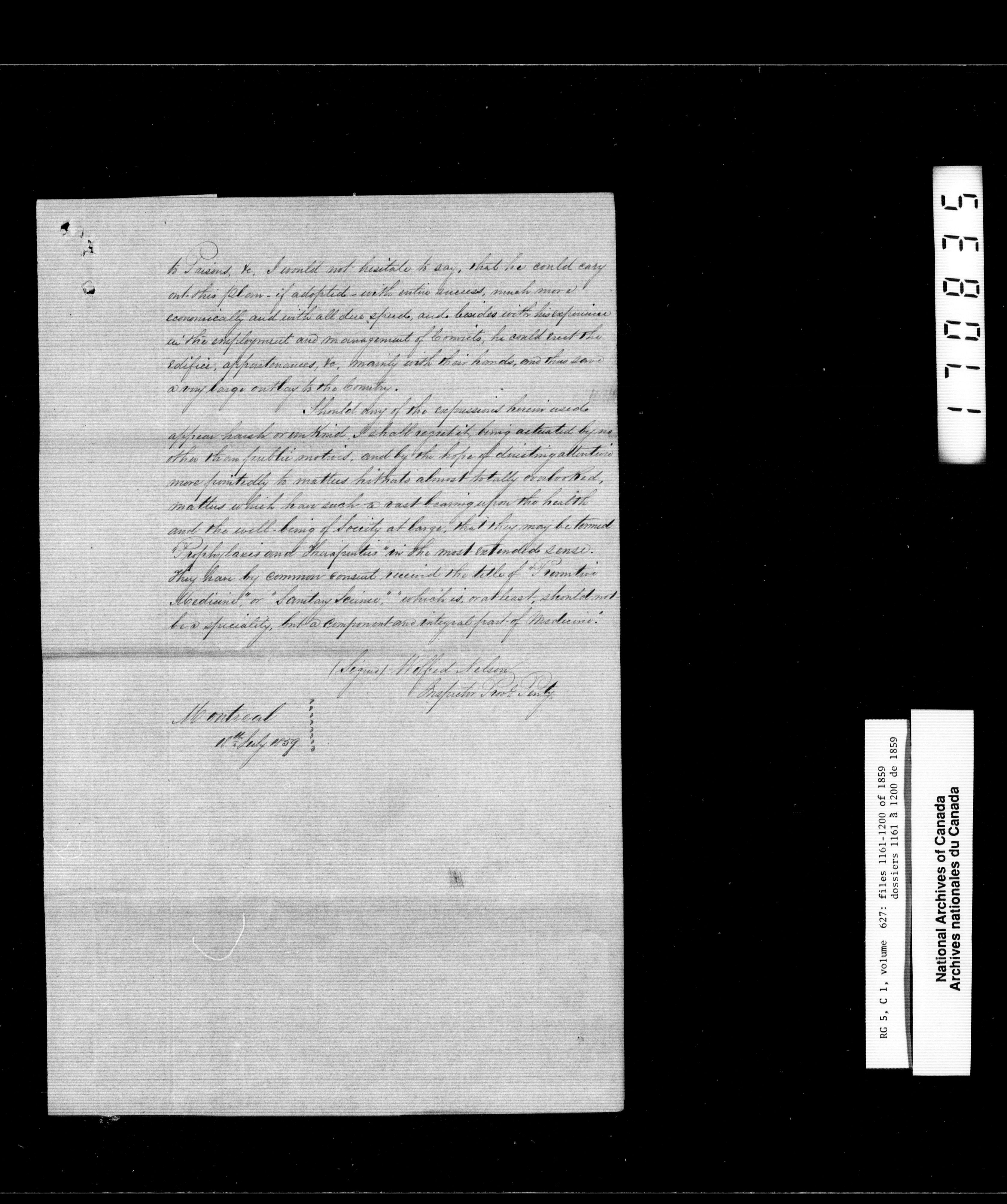 Canada West : Provincial Secretary, numbered correspondence files, 1844 to 1867 - 2467