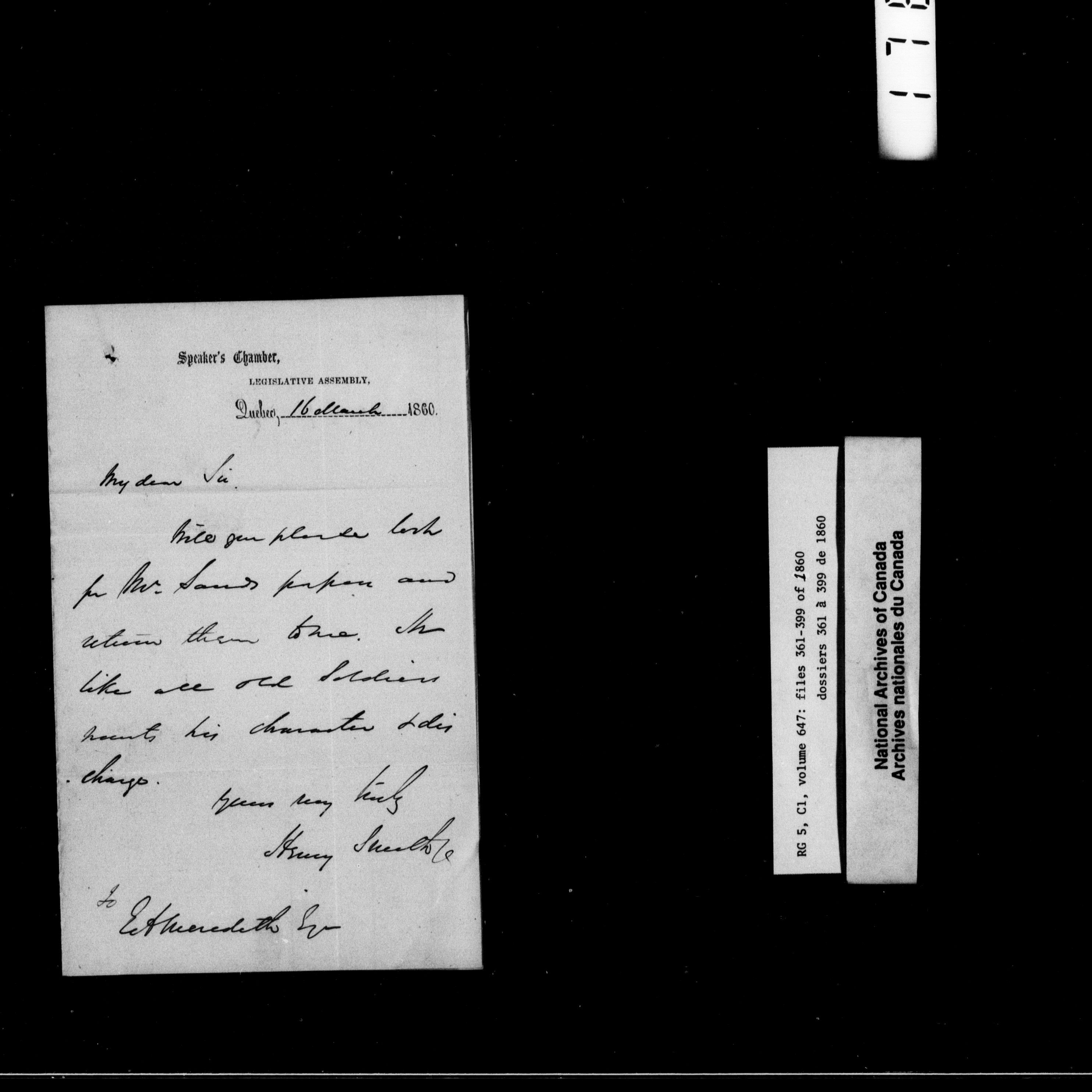 Canada West : Provincial Secretary, numbered correspondence files, 1844 to 1867 : H-2471