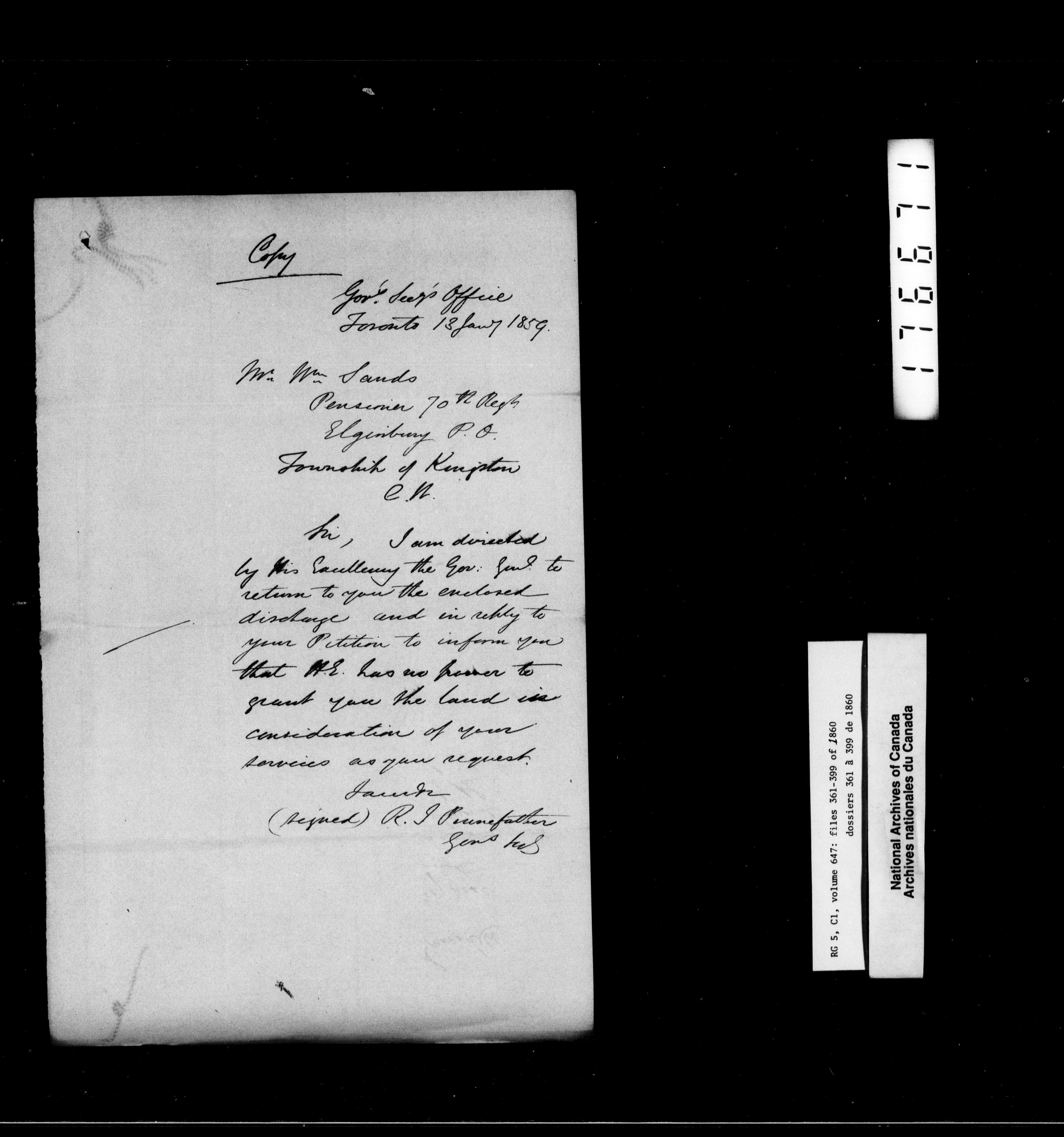 Canada West : Provincial Secretary, numbered correspondence files, 1844 to 1867 - 2471