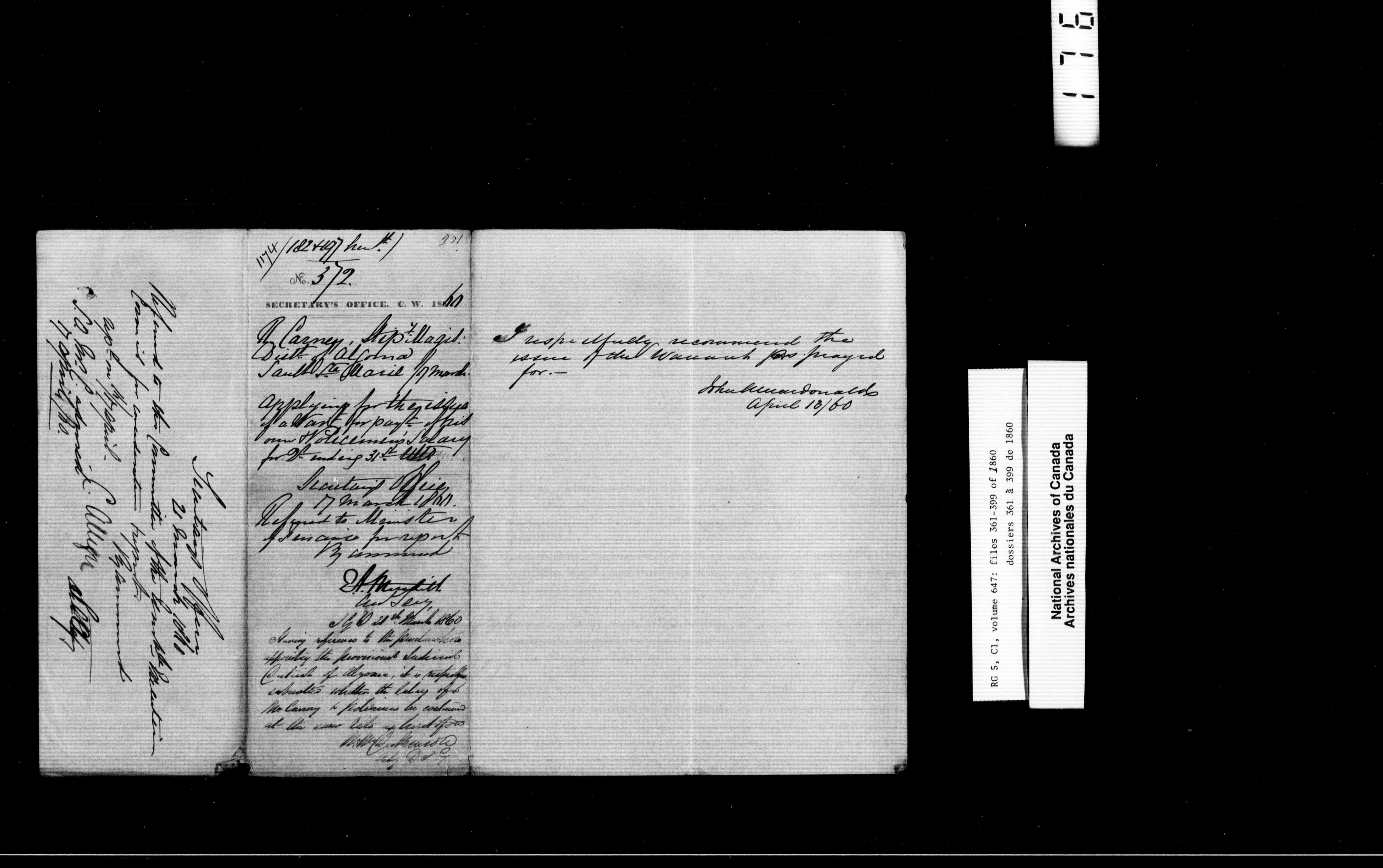 Canada West : Provincial Secretary, numbered correspondence files, 1844 to 1867 - 2471