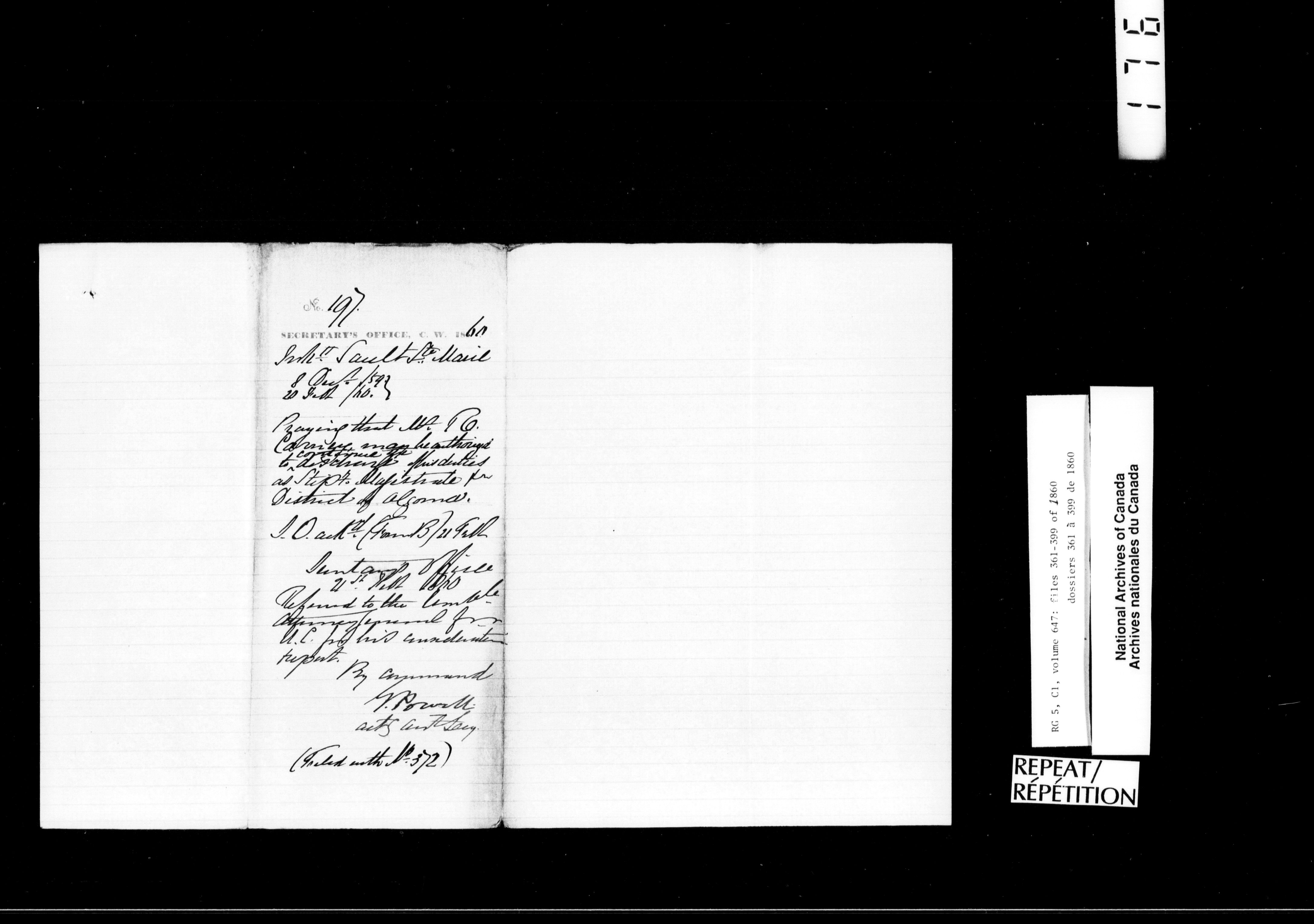 Canada West : Provincial Secretary, numbered correspondence files, 1844 to 1867 - 2471