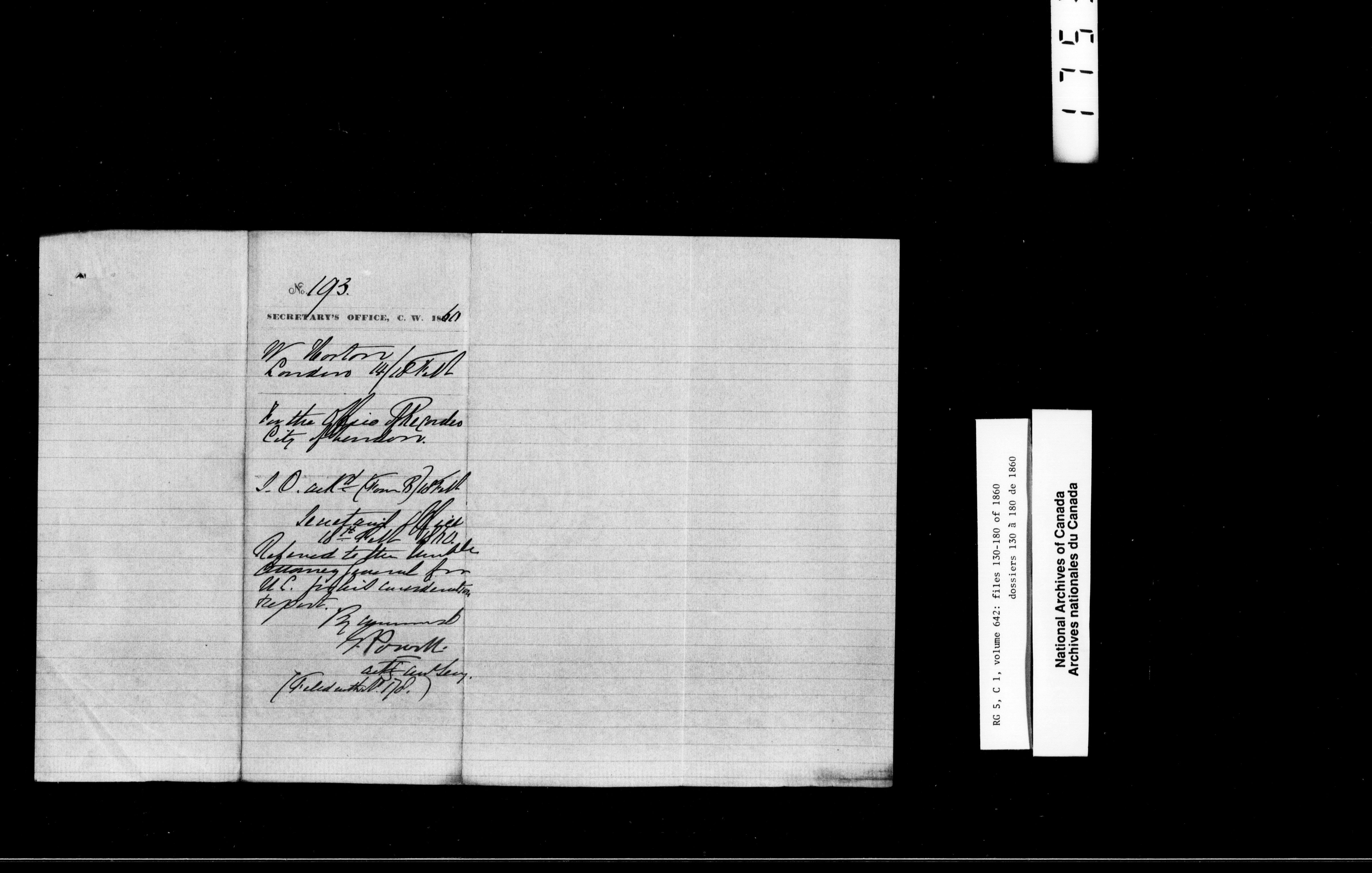 Canada West : Provincial Secretary, numbered correspondence files, 1844 to 1867 : H-2471