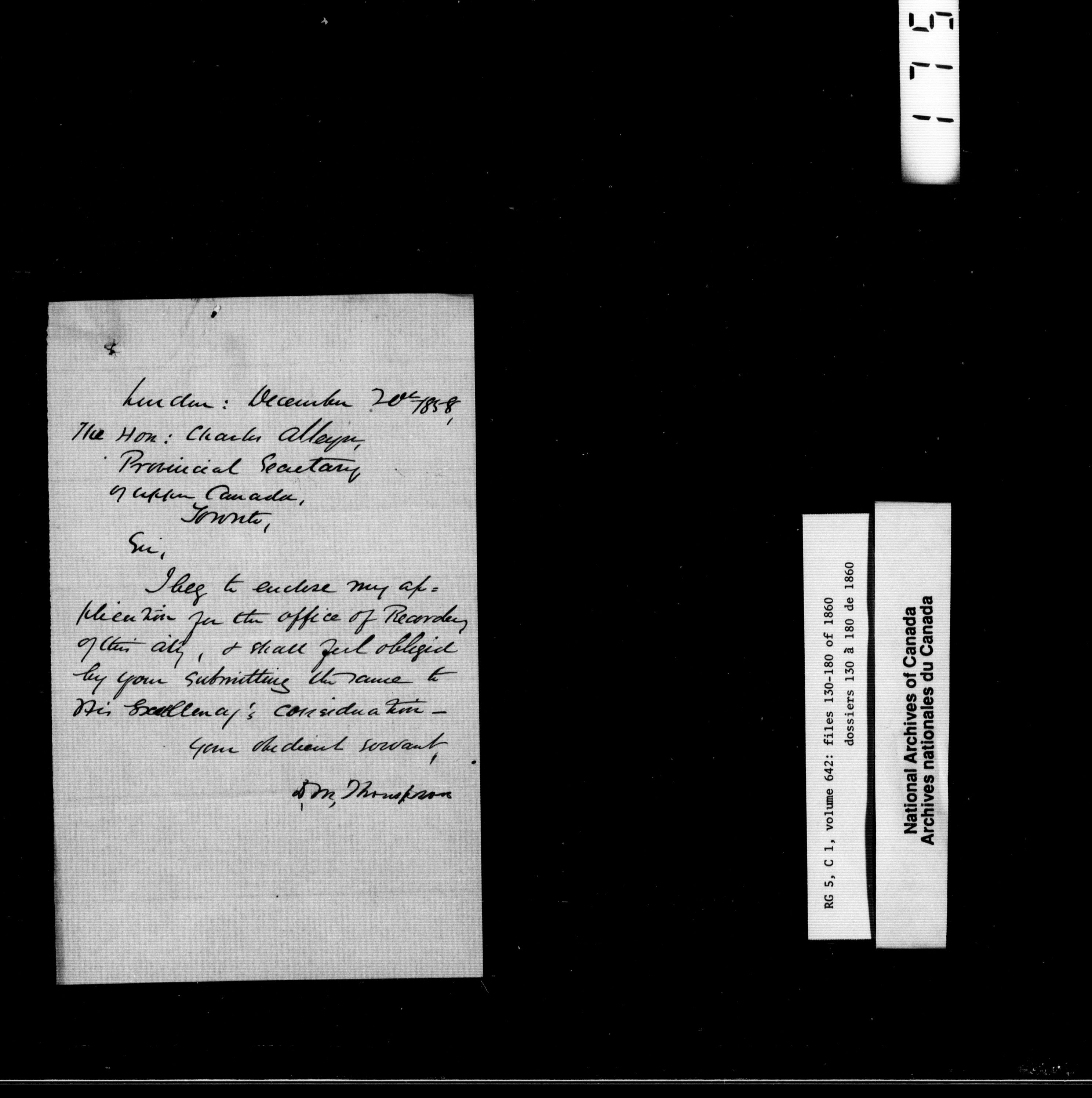 Canada West : Provincial Secretary, numbered correspondence files, 1844 to 1867 : H-2471