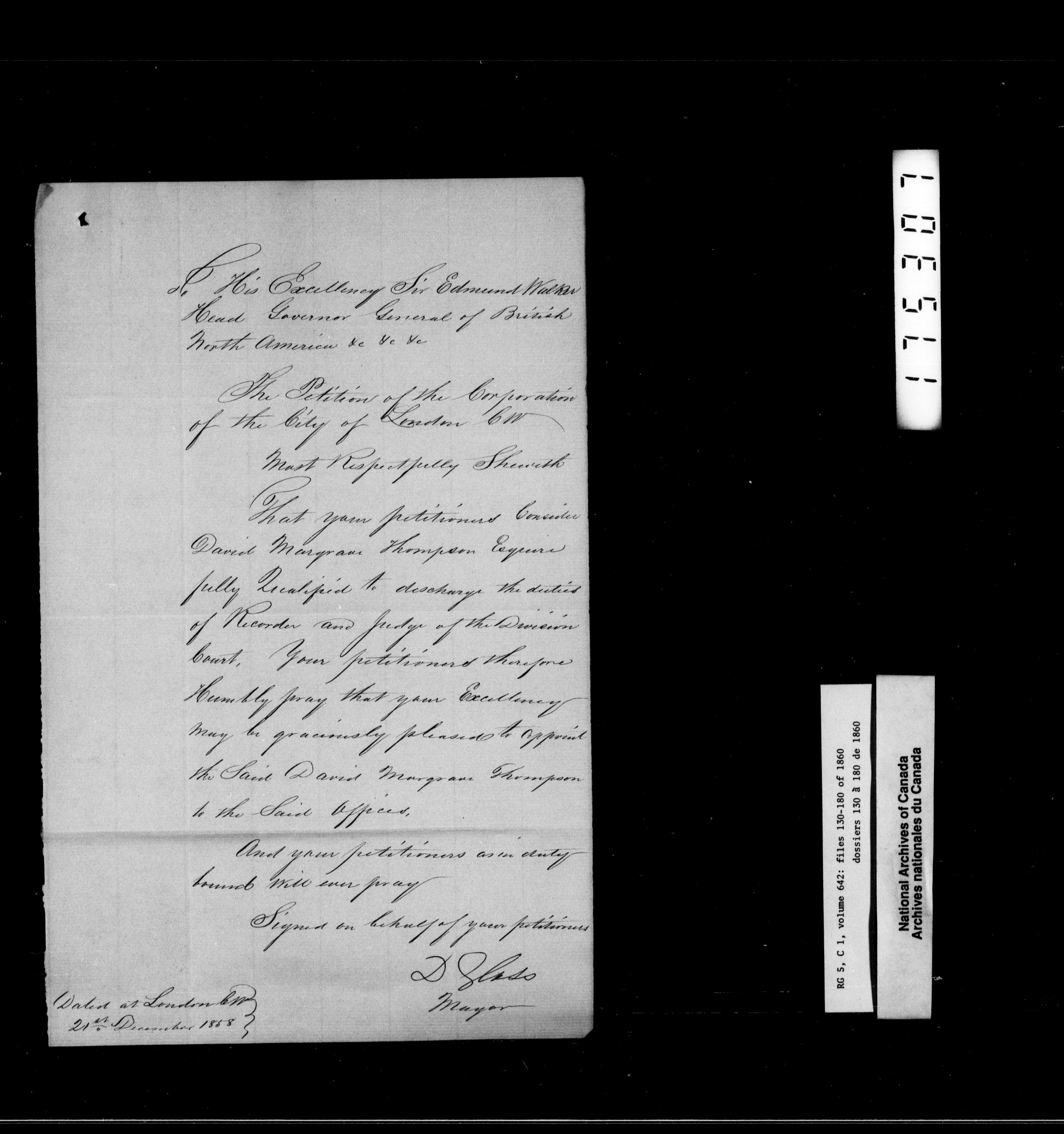 Canada West : Provincial Secretary, numbered correspondence files, 1844 to 1867 - 2471