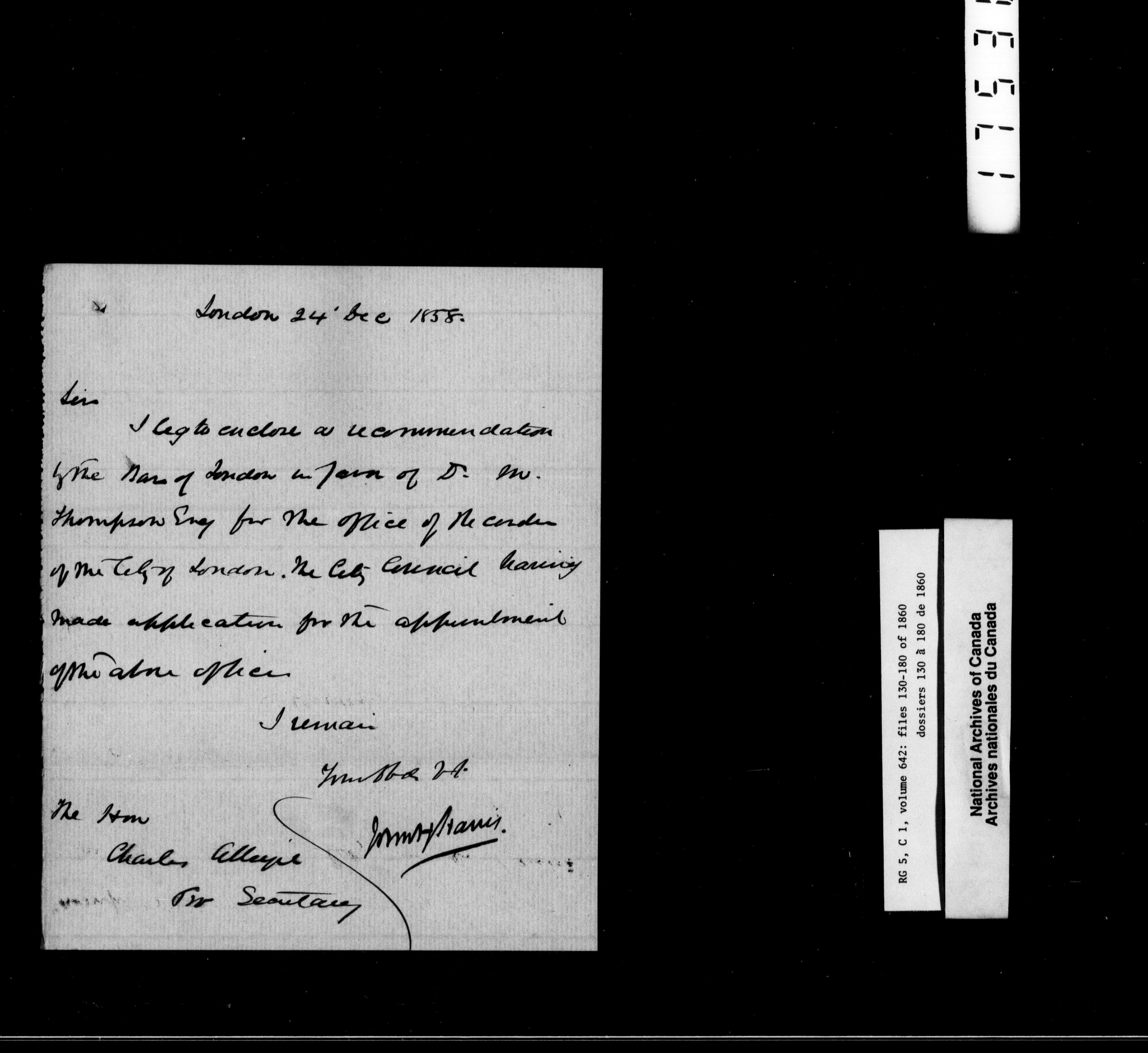 Canada West : Provincial Secretary, numbered correspondence files, 1844 to 1867 - 2471