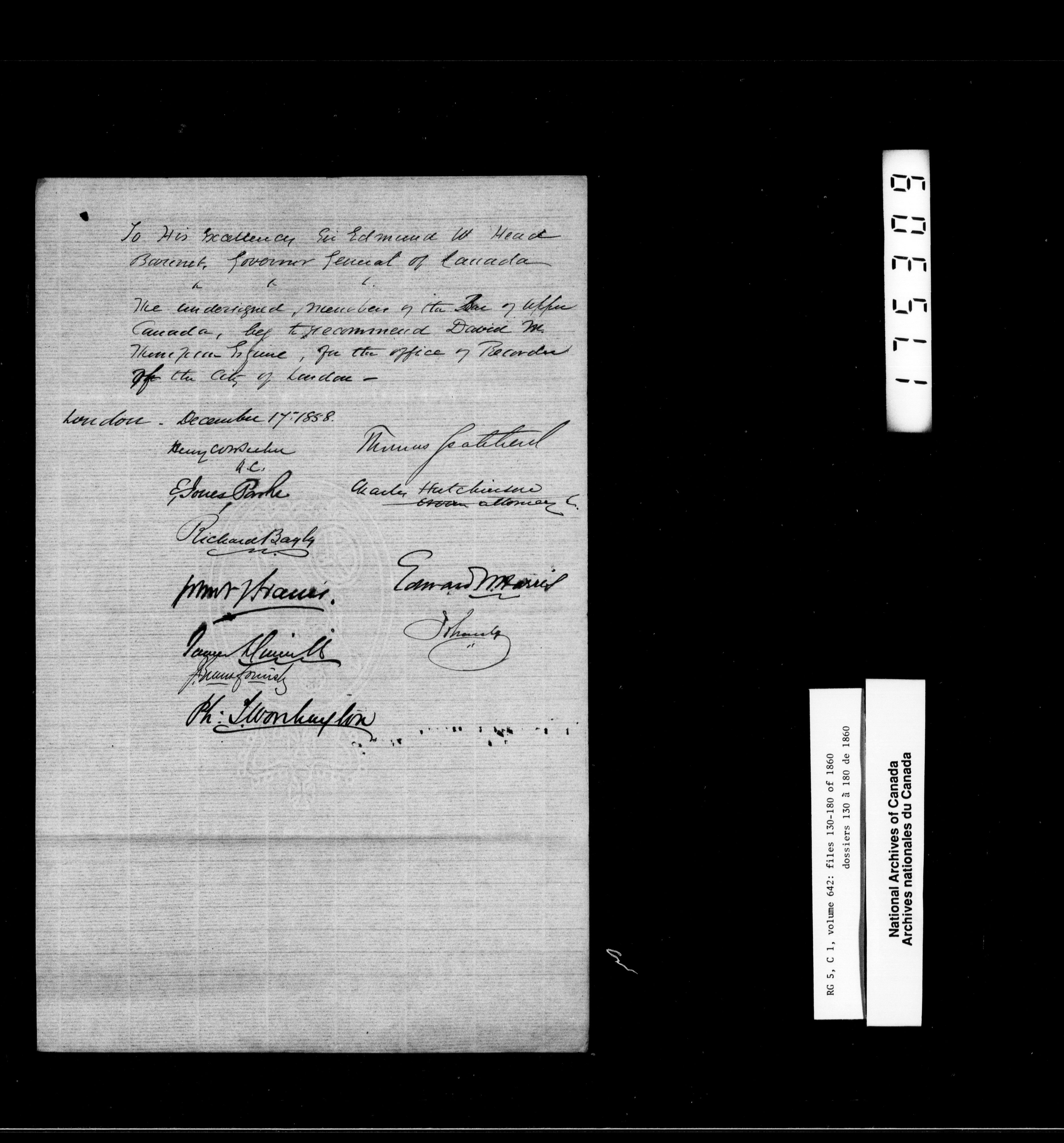 Canada West : Provincial Secretary, numbered correspondence files, 1844 to 1867 : H-2471