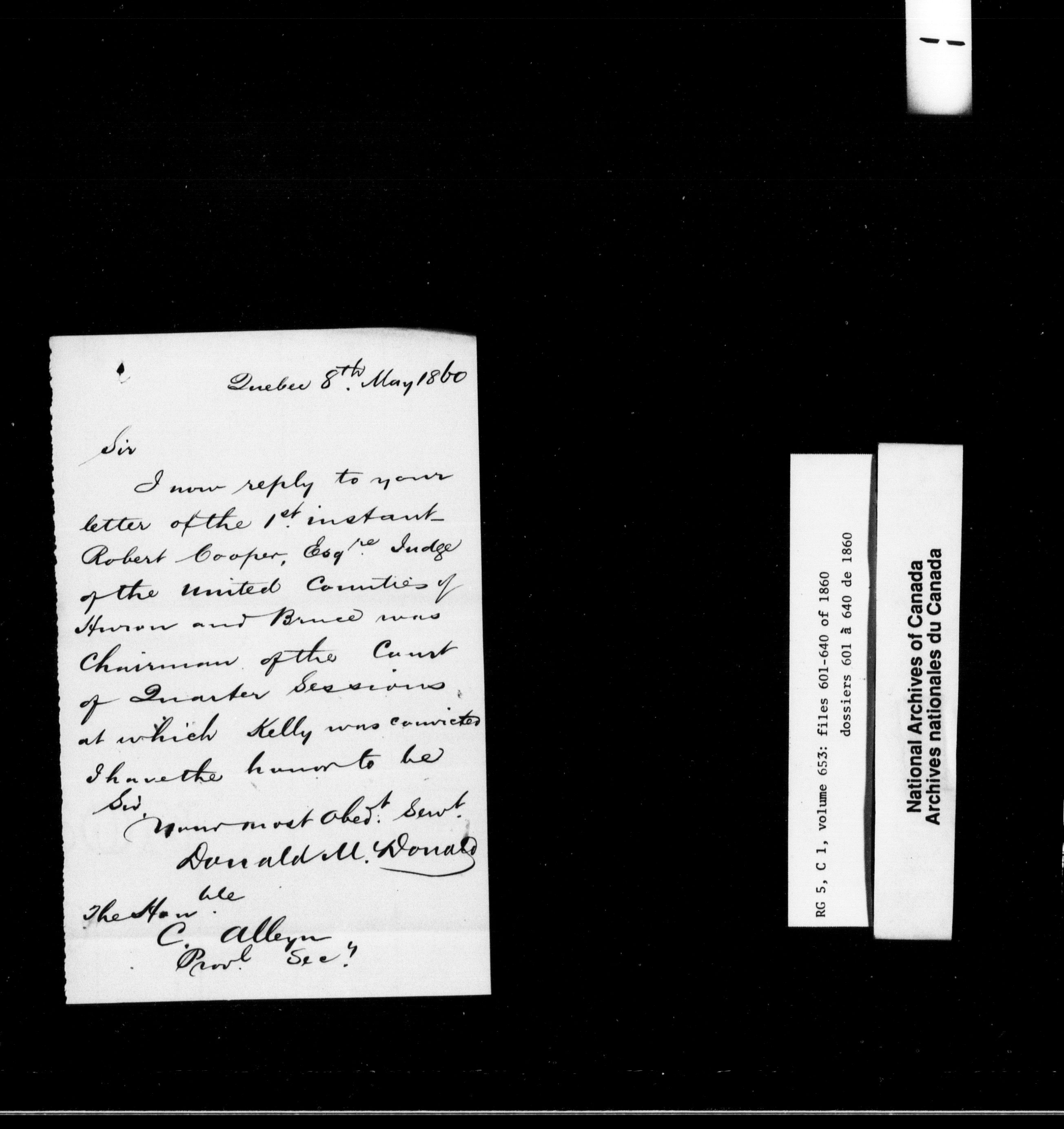 Canada West : Provincial Secretary, numbered correspondence files, 1844 to 1867 : H-2472