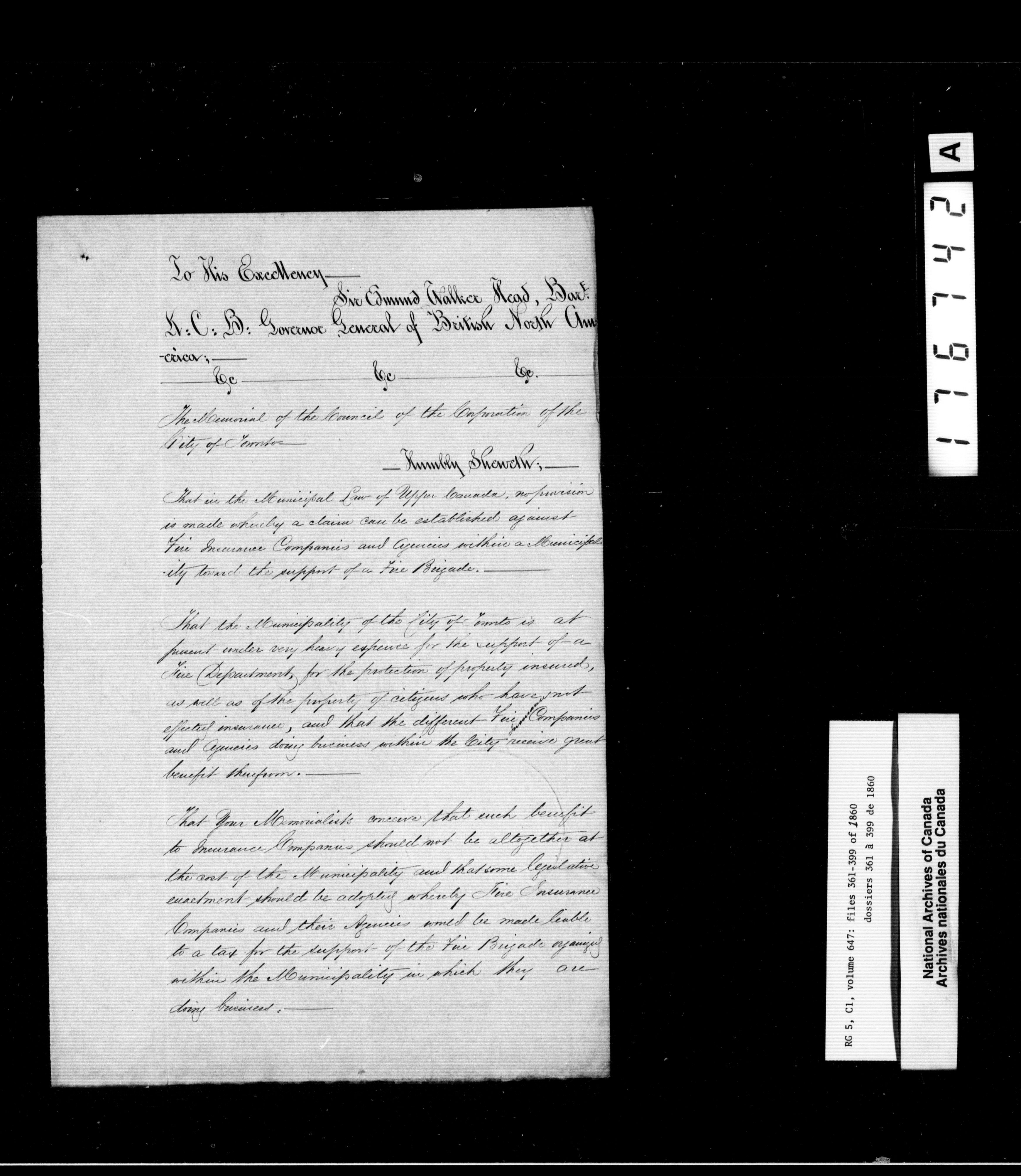 Canada West : Provincial Secretary, numbered correspondence files, 1844 to 1867 - 2472