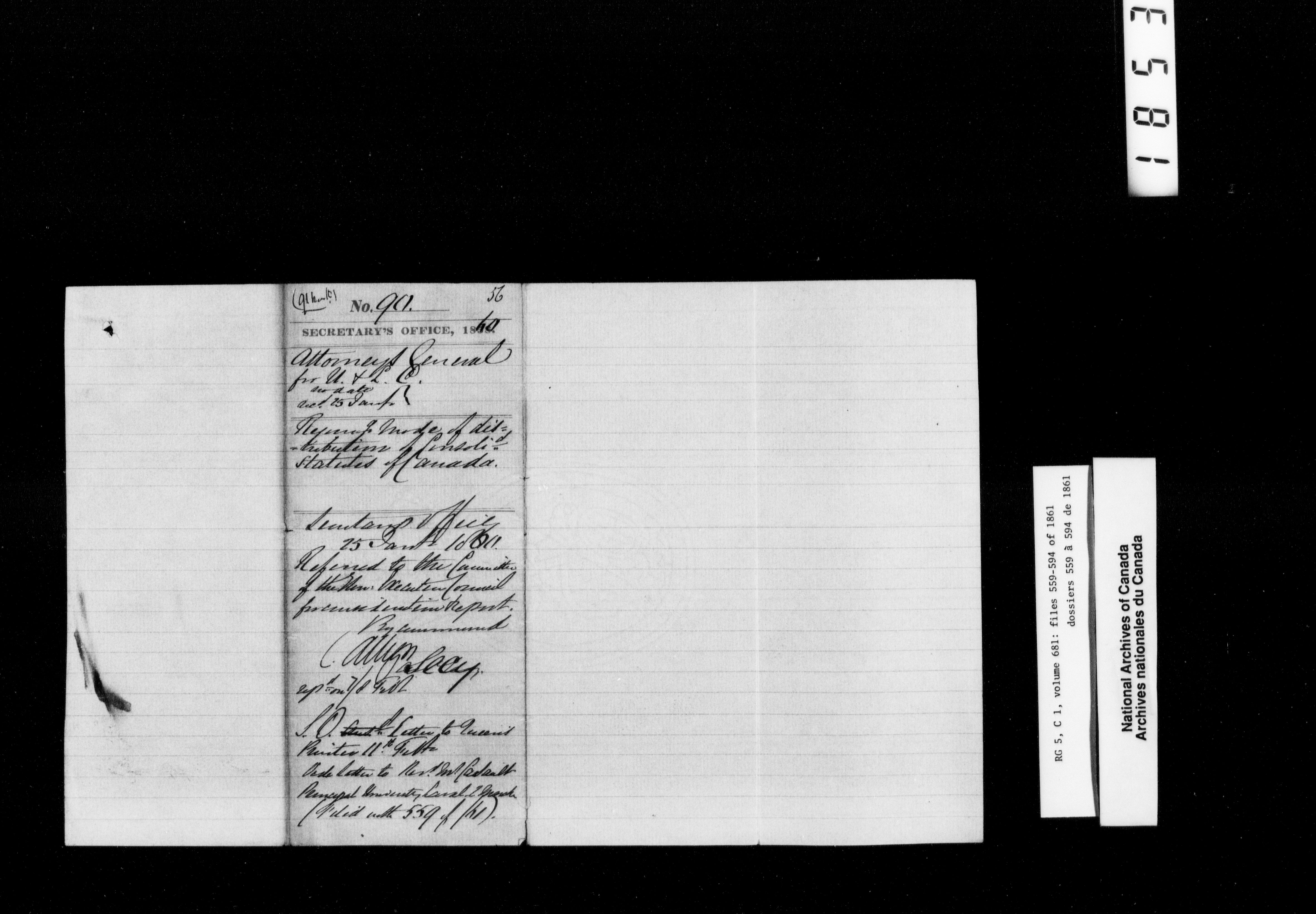 Canada West : Provincial Secretary, numbered correspondence files, 1844 to 1867 - 2477