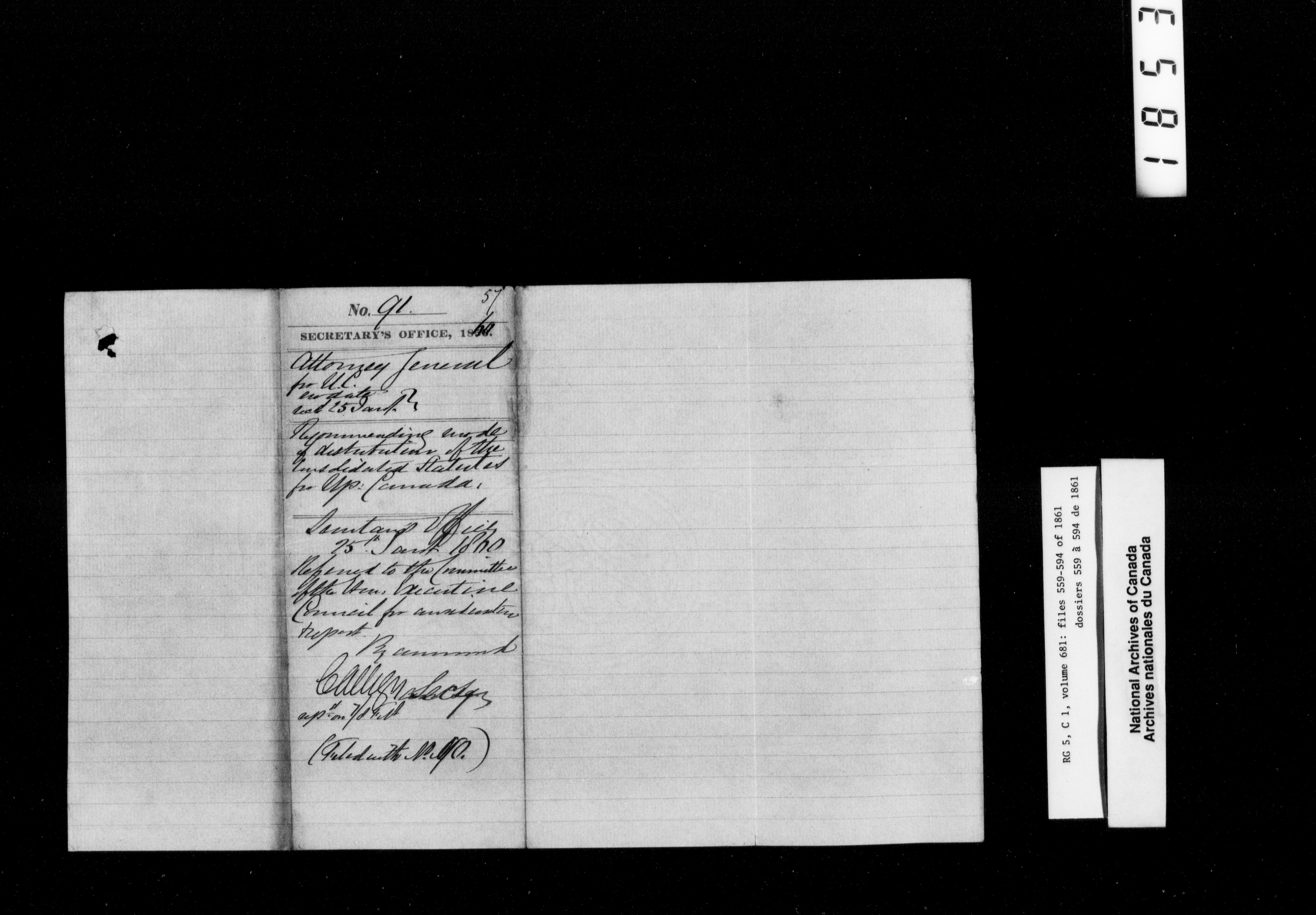 Canada West : Provincial Secretary, numbered correspondence files, 1844 to 1867 - 2477